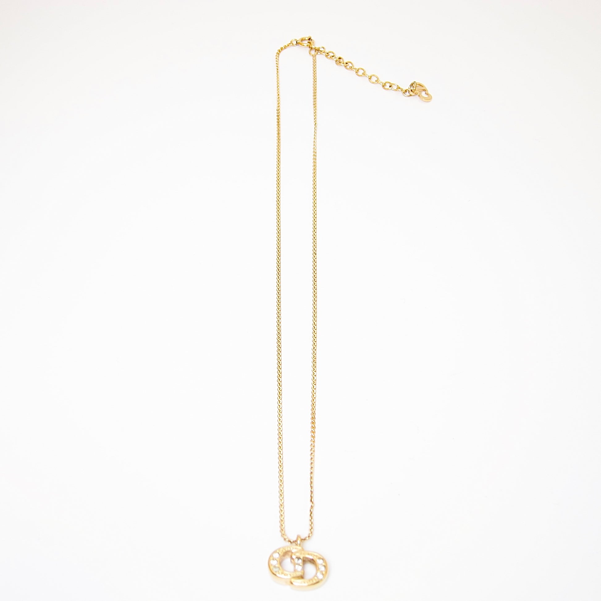 Christian Dior Vintage CD Logo with Rhinestone Golden Necklace