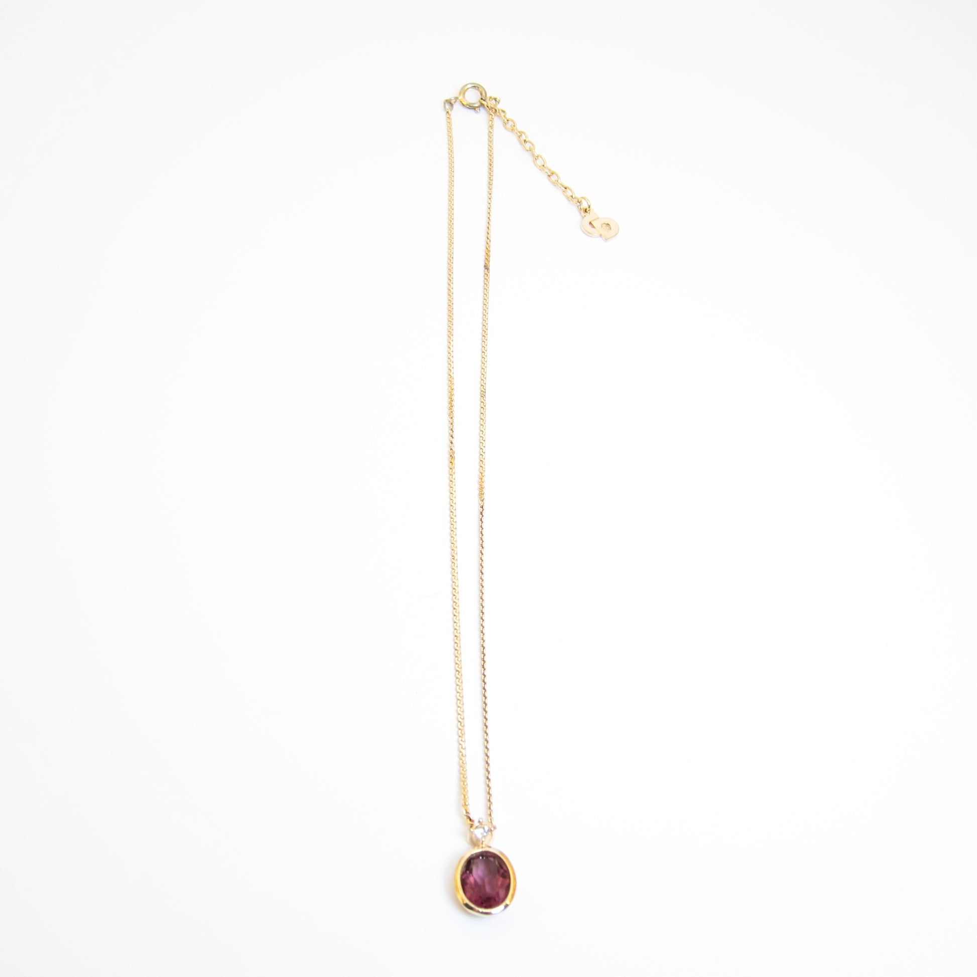 Christian Dior Vintage Plum Color Stone Golden Necklace