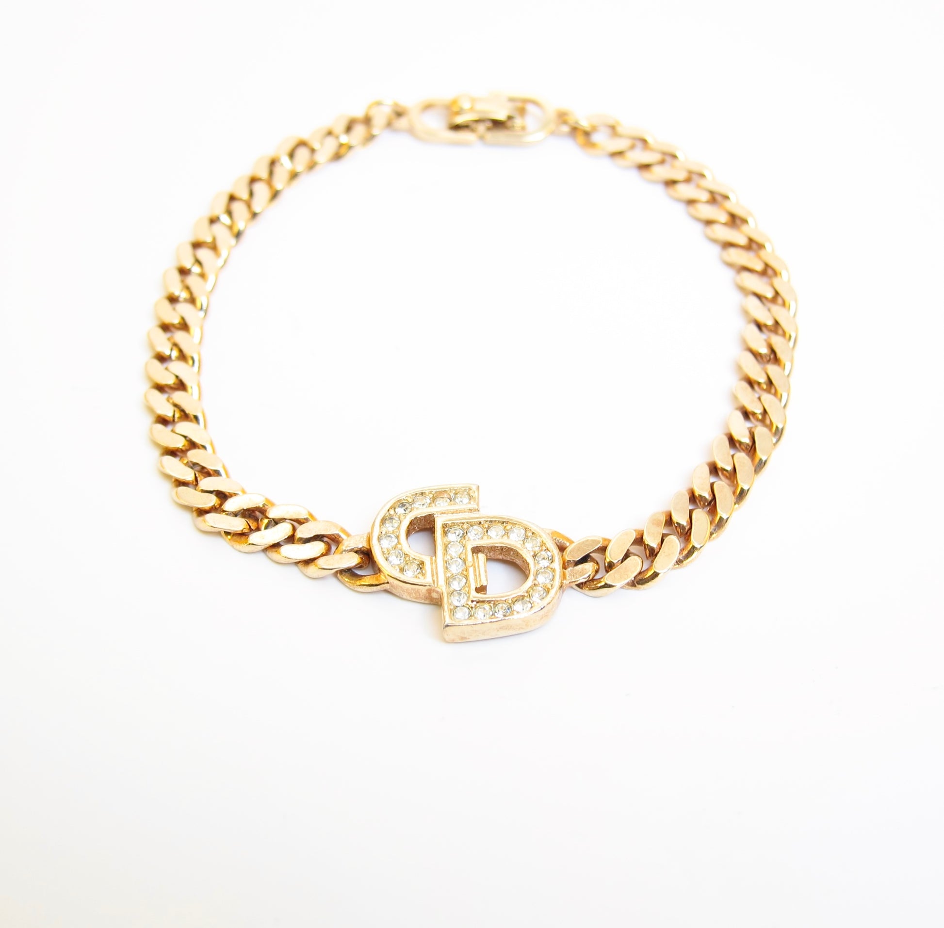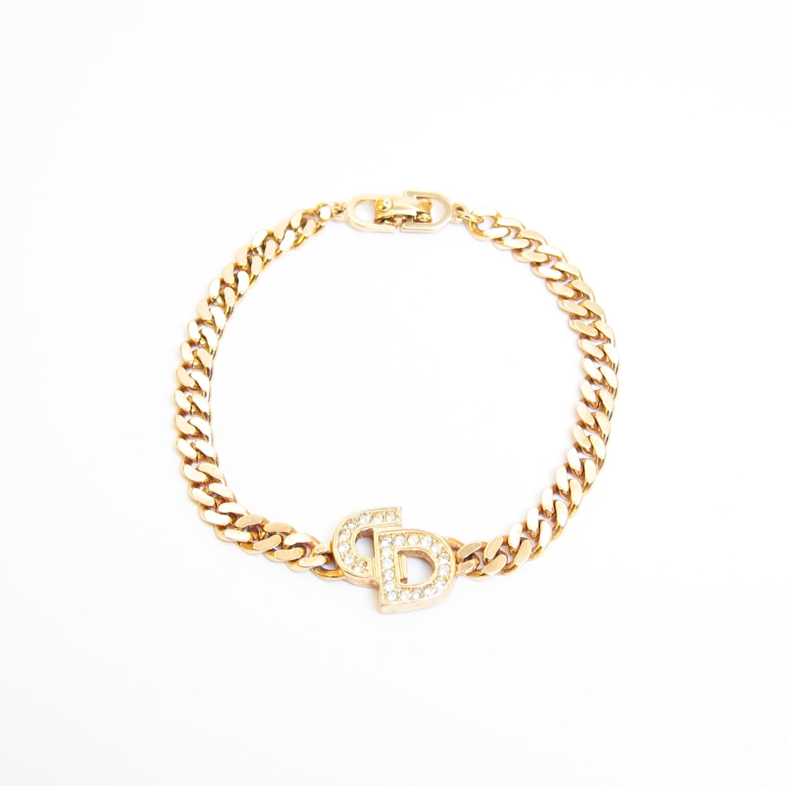 Christian Dior Vintage CD Logo with Rhinestone Golden Bracelet