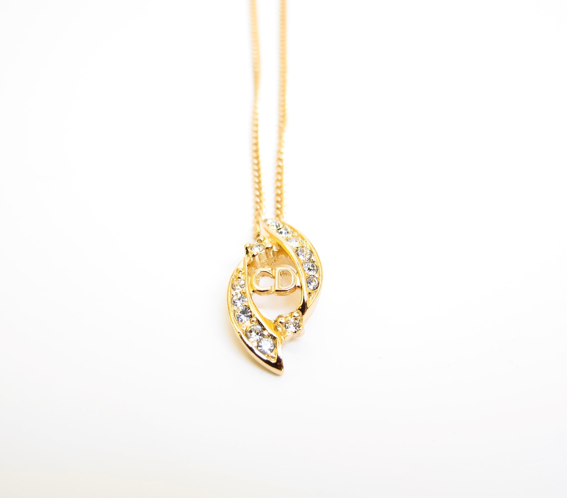 Christian Dior Vintage CD Logo and Rhinestone Golden Necklace