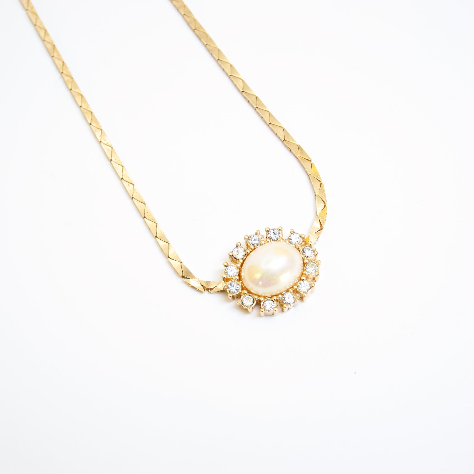 Christian Dior Vintage Oval Shape Pearl and Rhinestone Golden Necklace