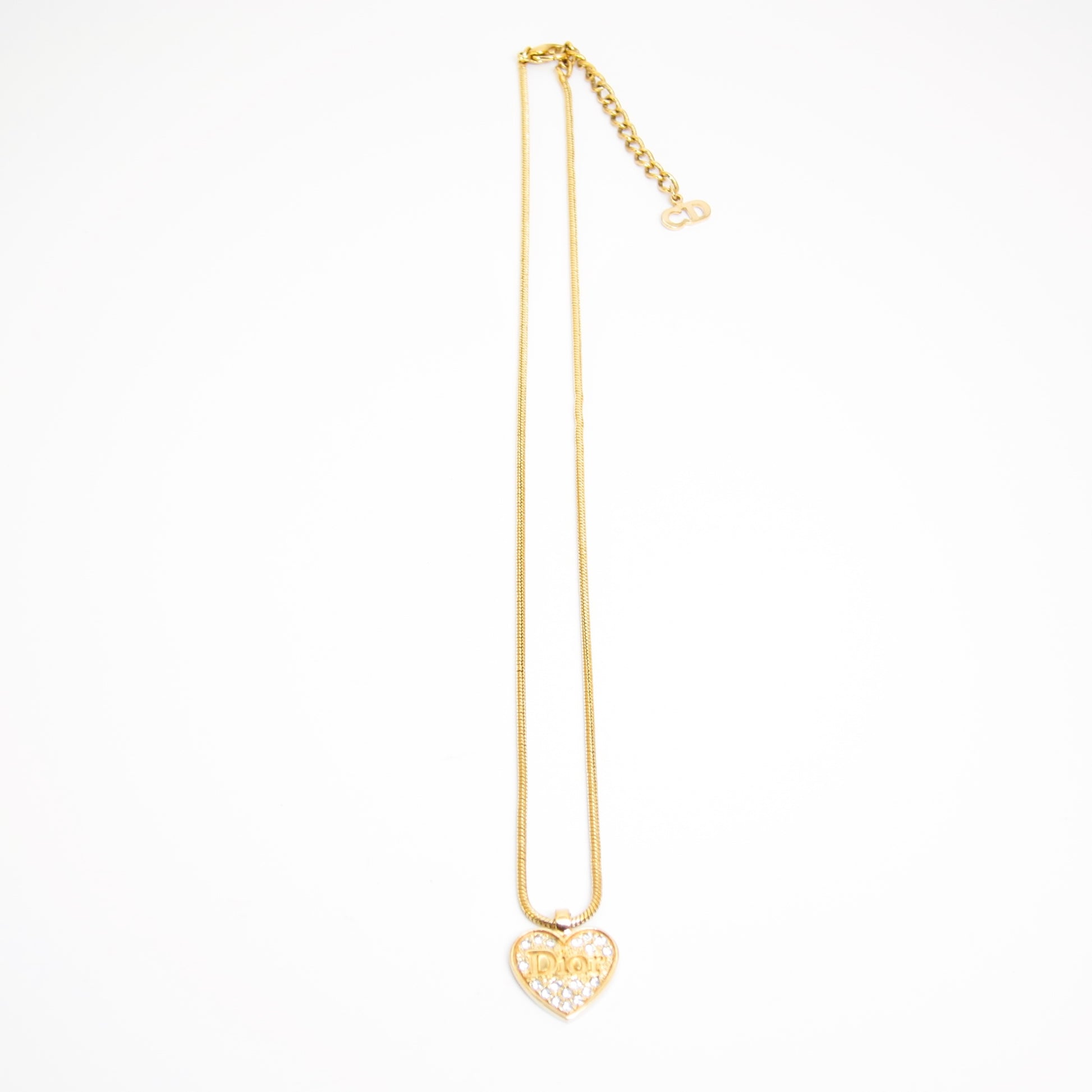 Christian Dior Vintage Dior Logo on Heart with Rhinestone Golden Necklace