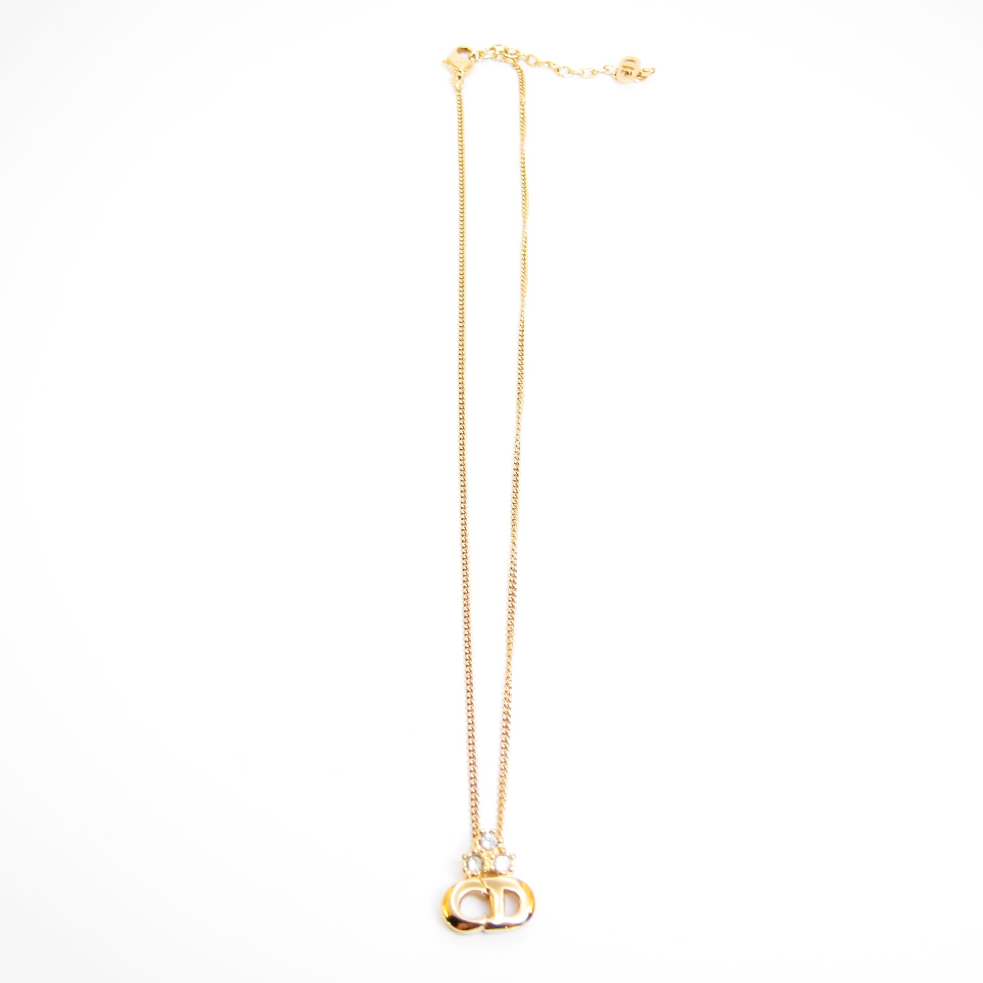 Christian Dior Vintage CD Logo and Rhinestone Golden Necklace