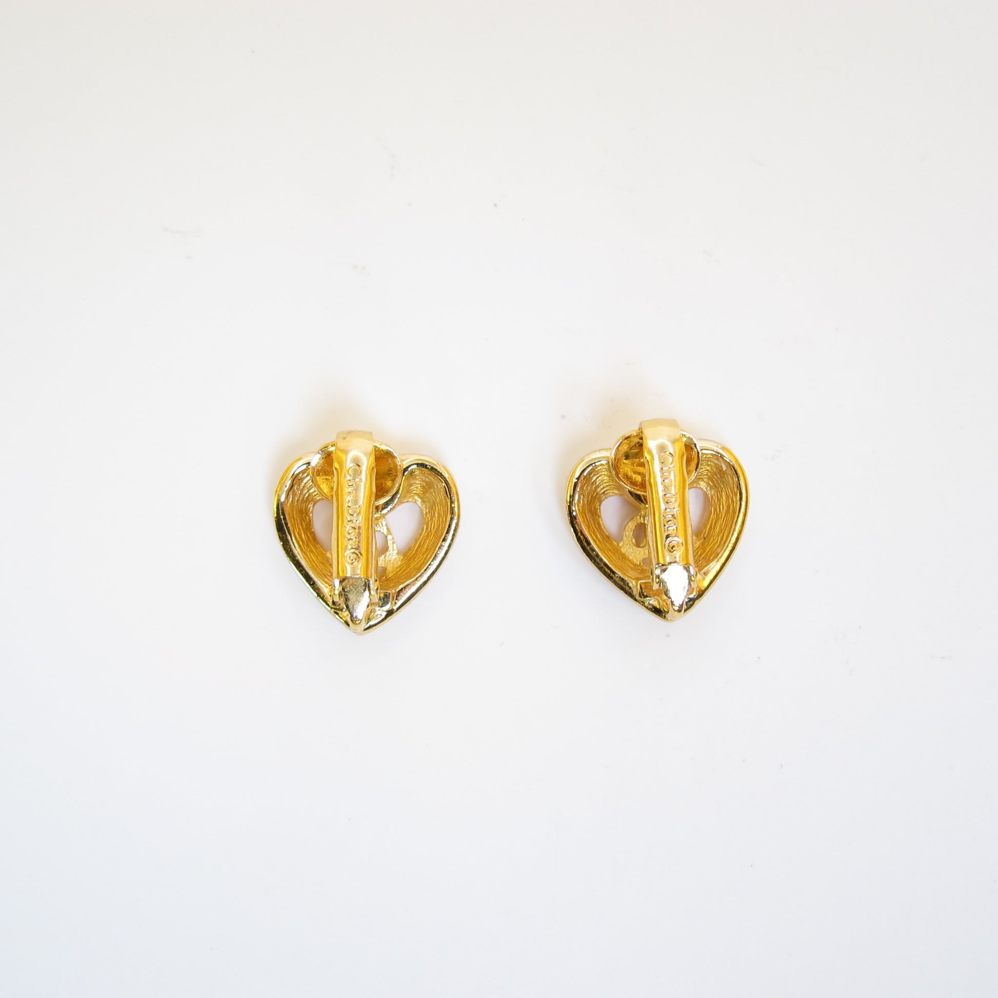Christian Dior Vintage CD Logo in Heart with Rhinestone Golden Clip-on Earrings