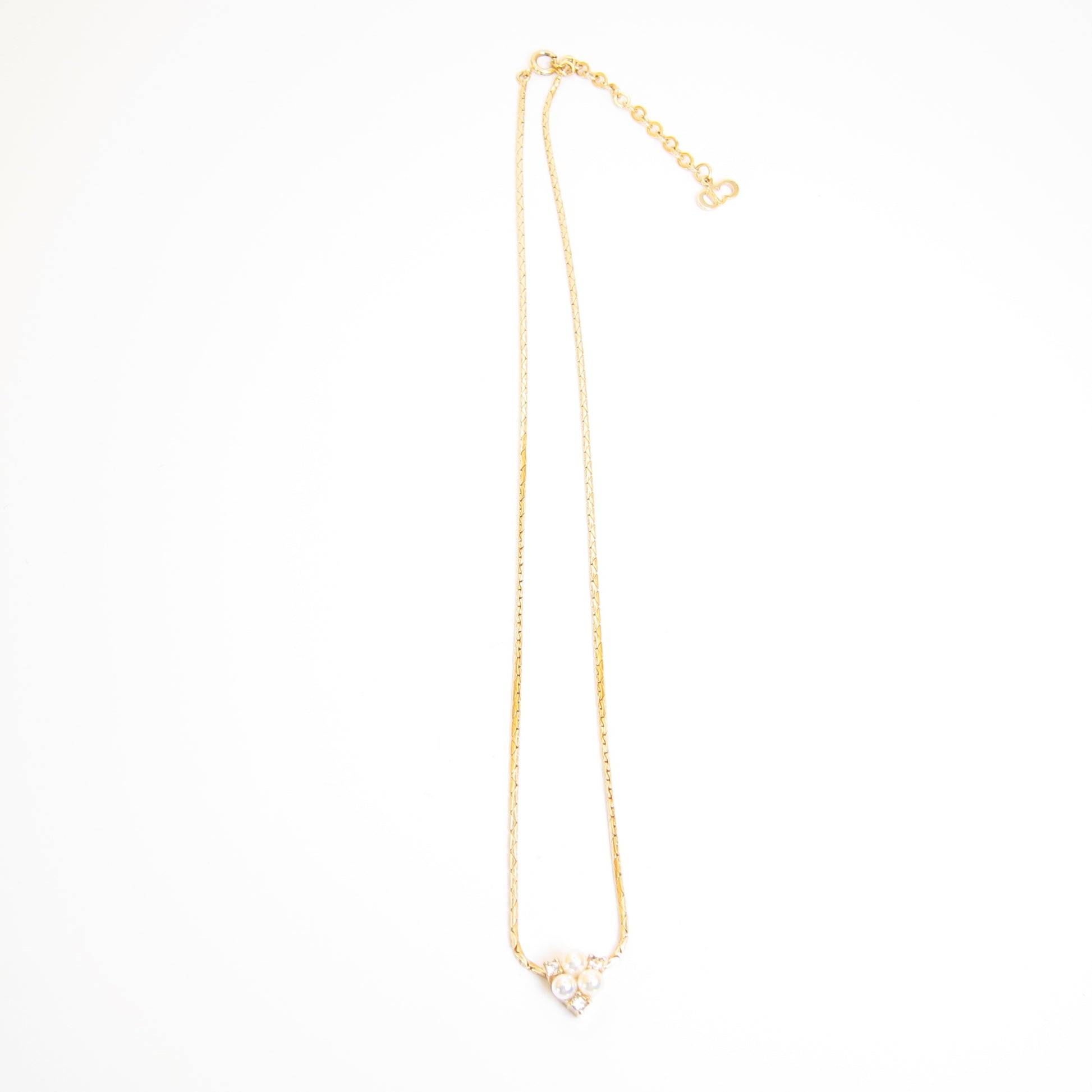 Christian Dior Vintage Pearl and Rhinestone Golden Necklace