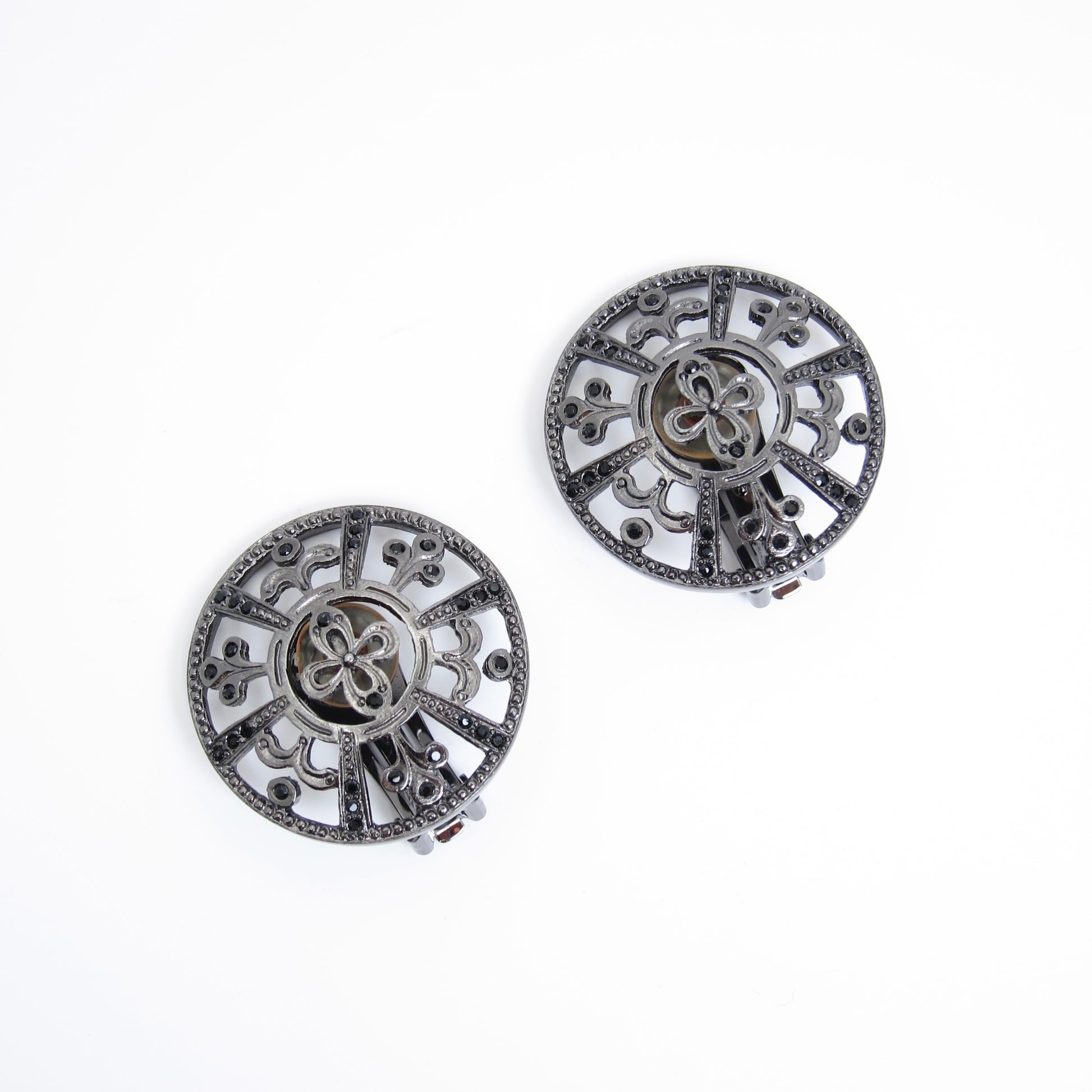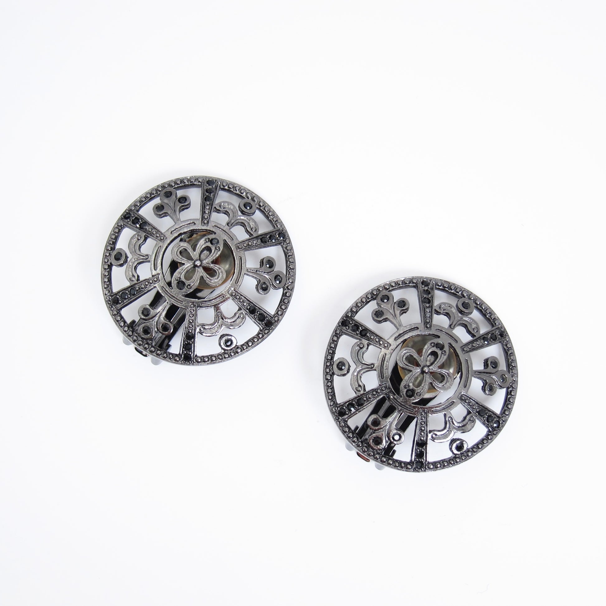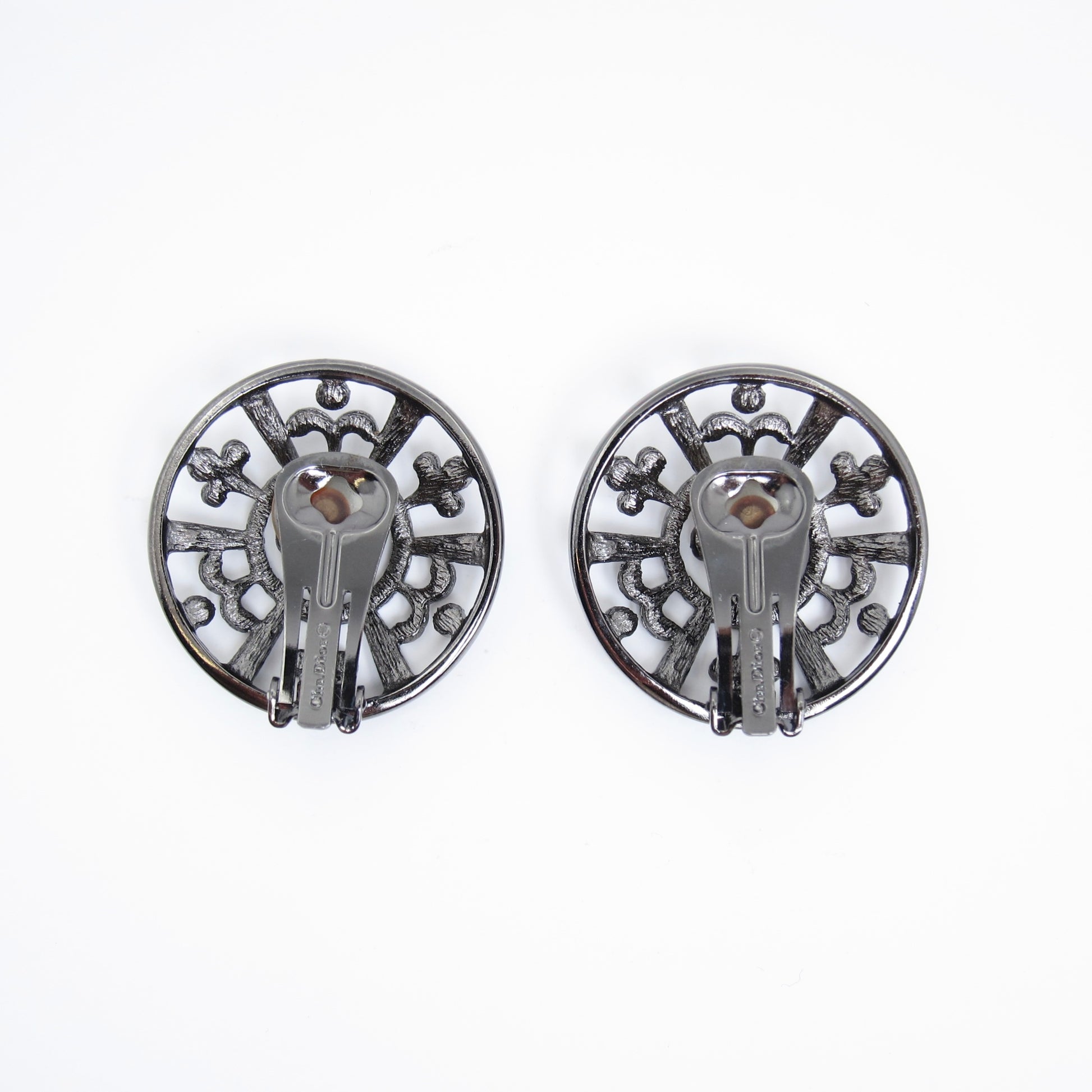Christian Dior Vintage Stylish Round and Black Clip-on Earrings