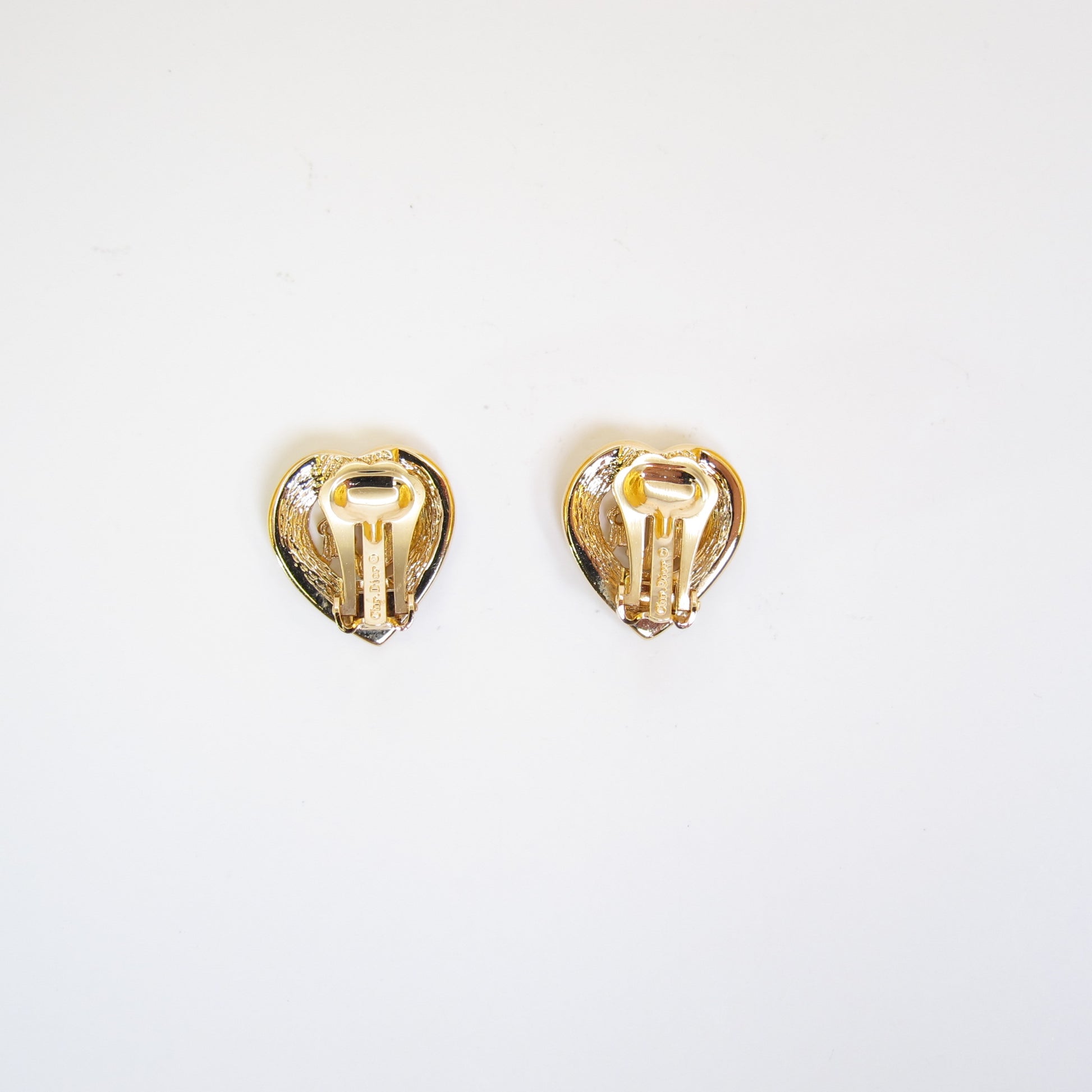 Christian Dior Vintage Dior Logo in Heart with Rhinestone Golden Clip-on Earrings