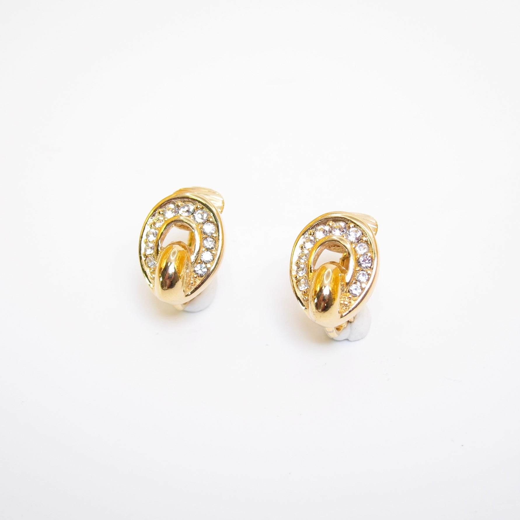 Christian Dior Vintage Oval Shape and Rhinestone Golden Clip-on Earrings