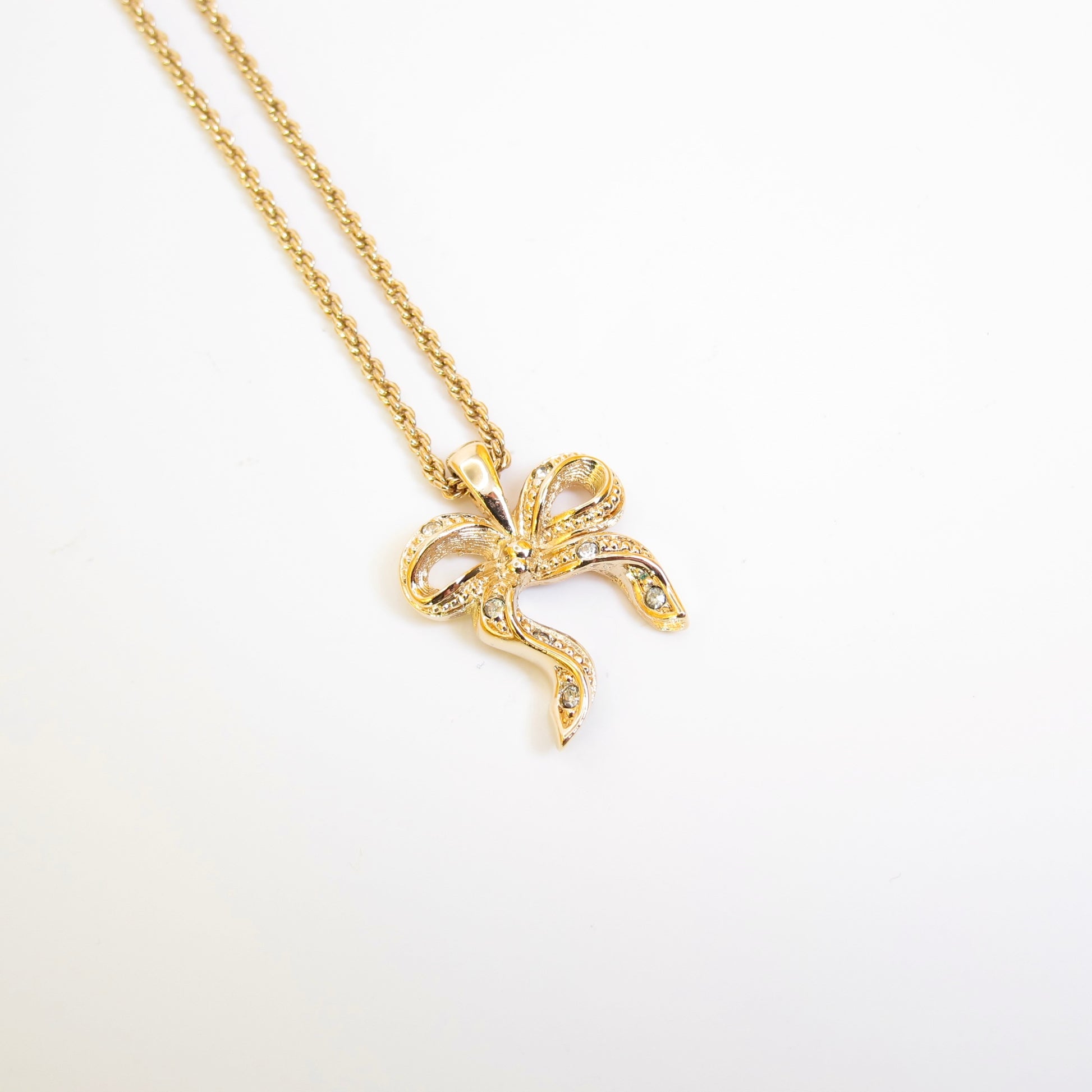 Christian Dior Vintage Ribbon with Rhinestone Golden Necklace