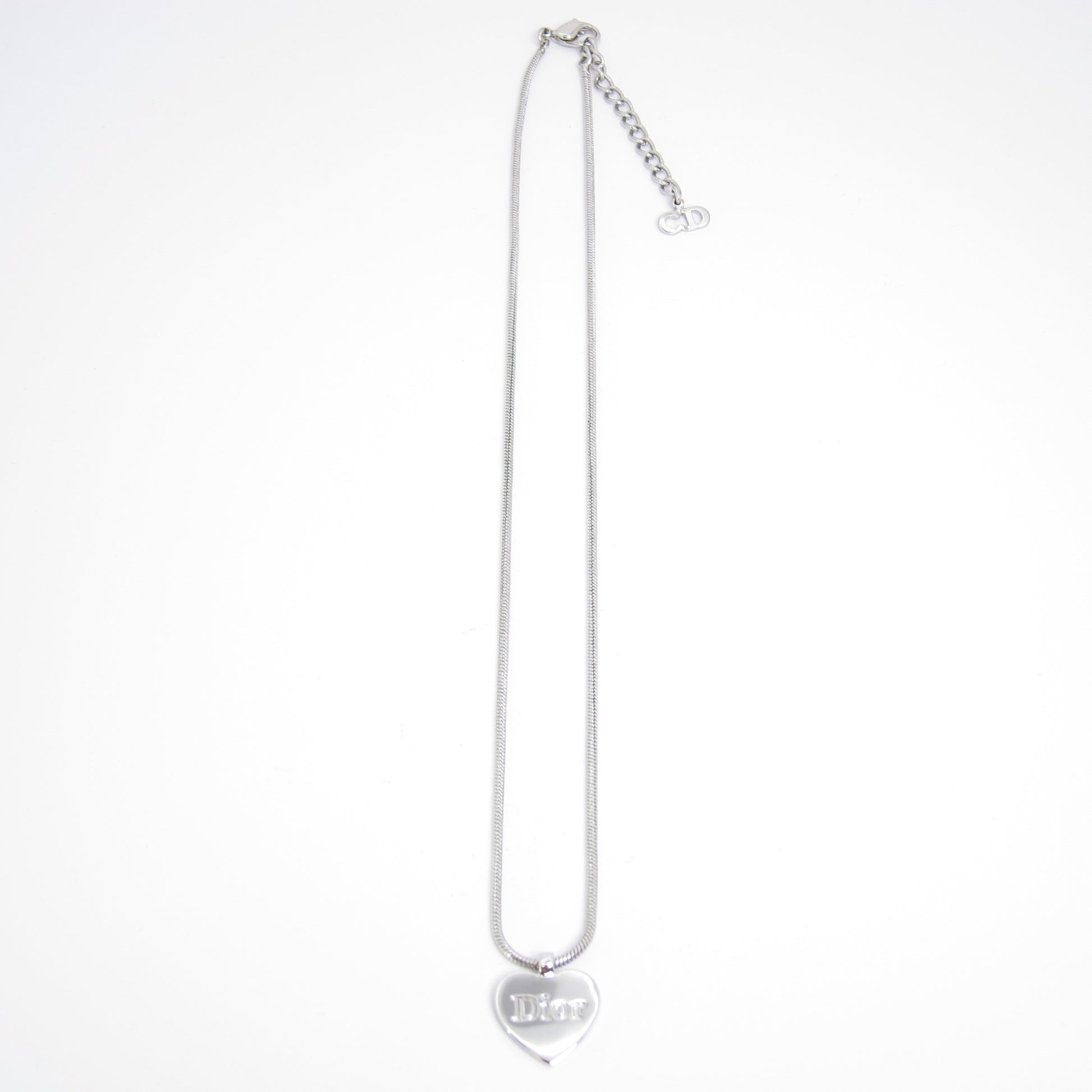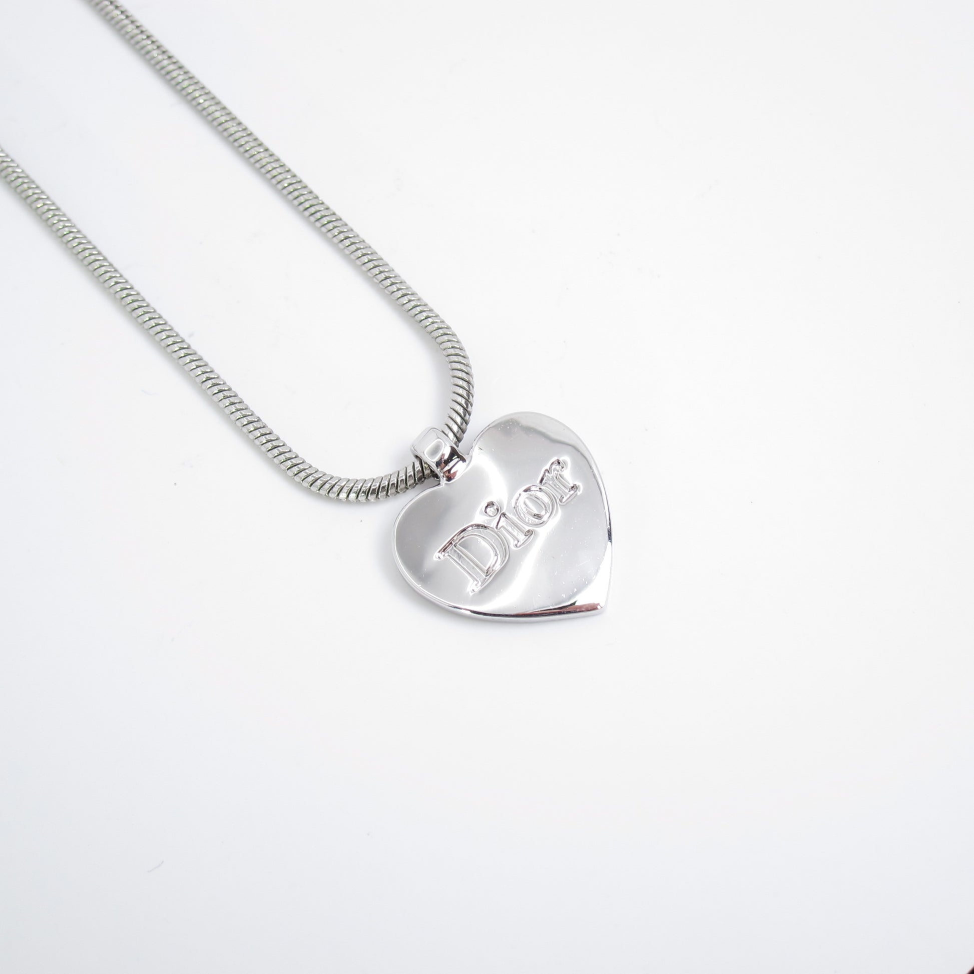 Christian Dior Vintage Dior Logo on Heart Silver Necklace