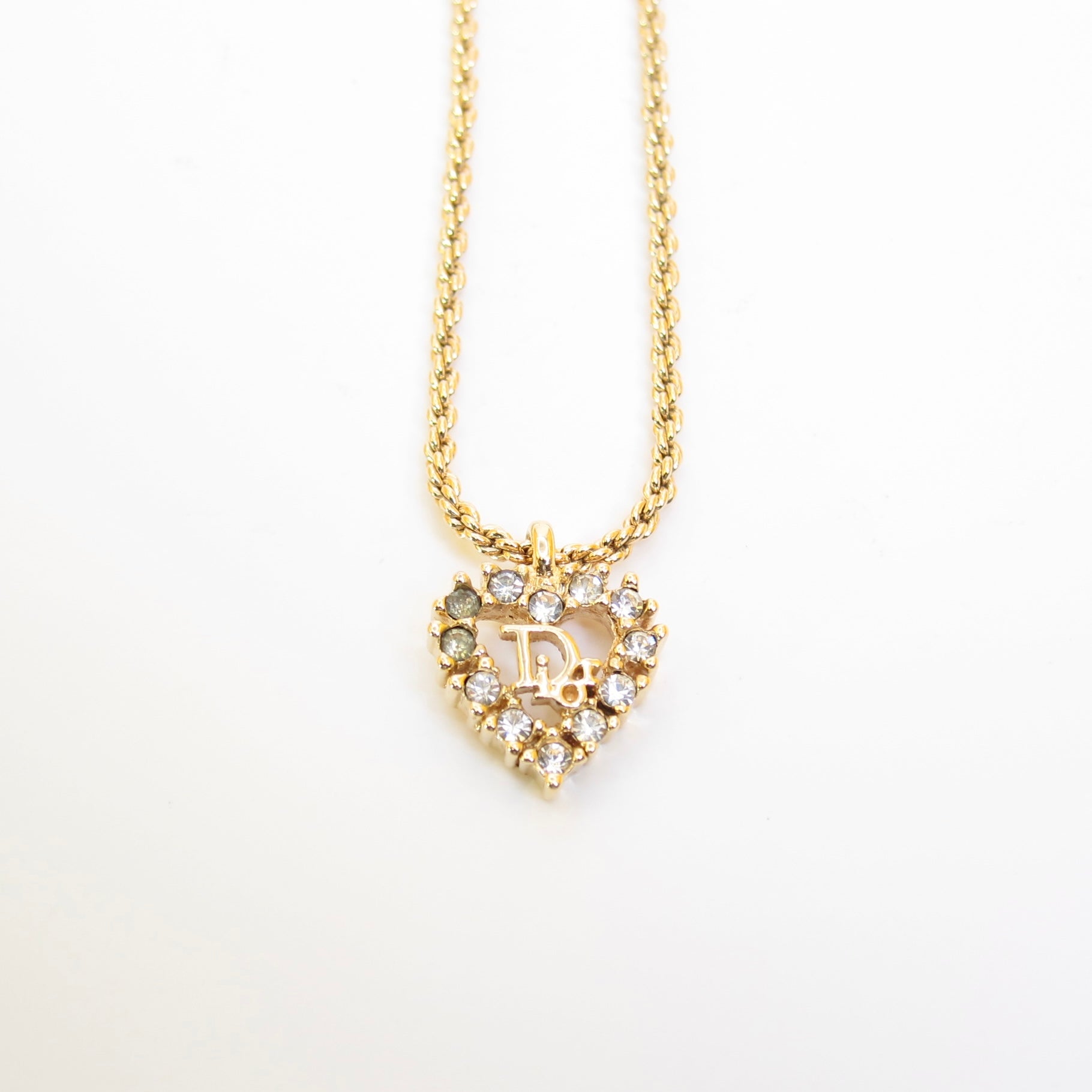 Christian Dior Vintage Dior Logo in Heart with Rhinestone Golden Necklace
