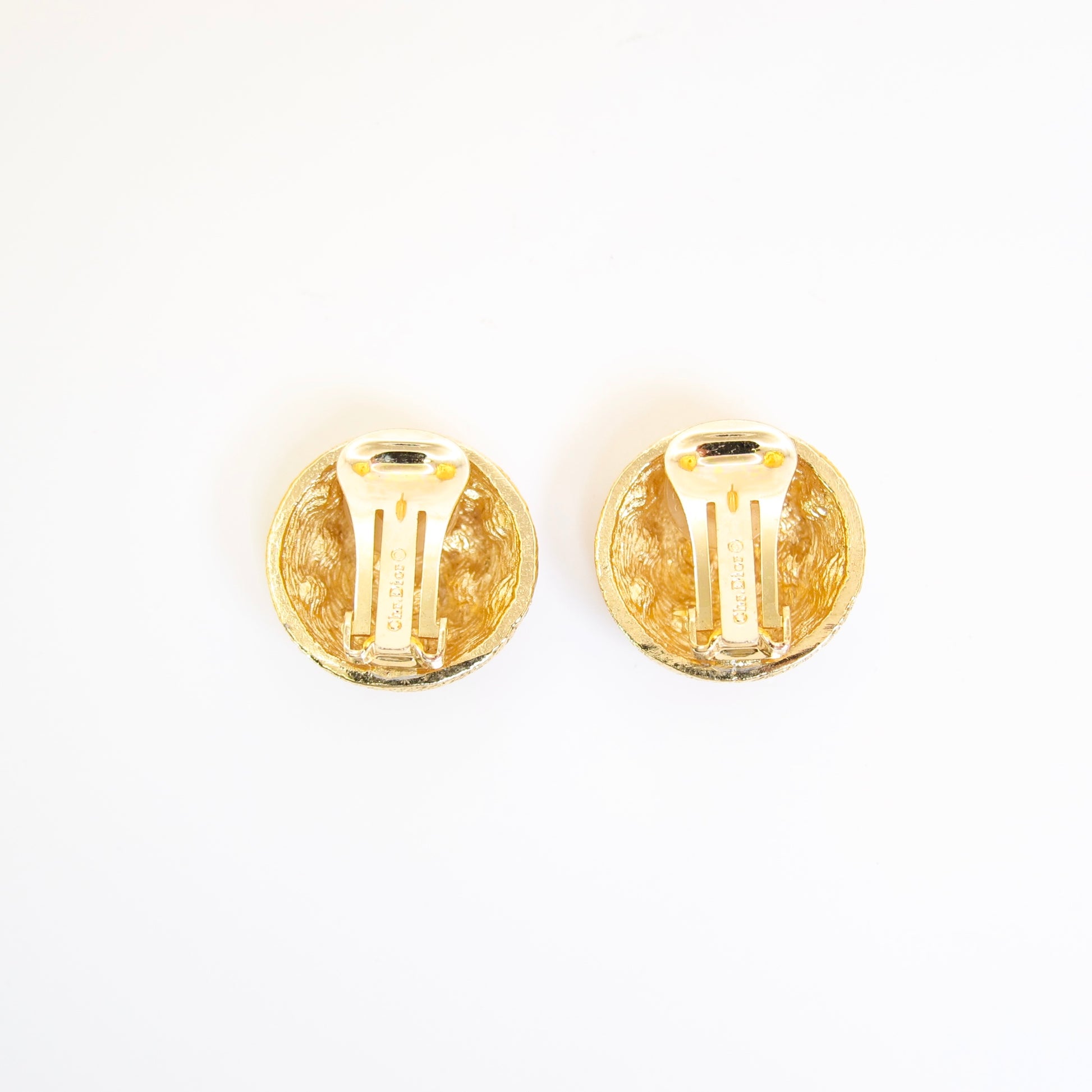 Christian Dior Vintage Round Shape Rhinestone Golden Clip-on Earrings