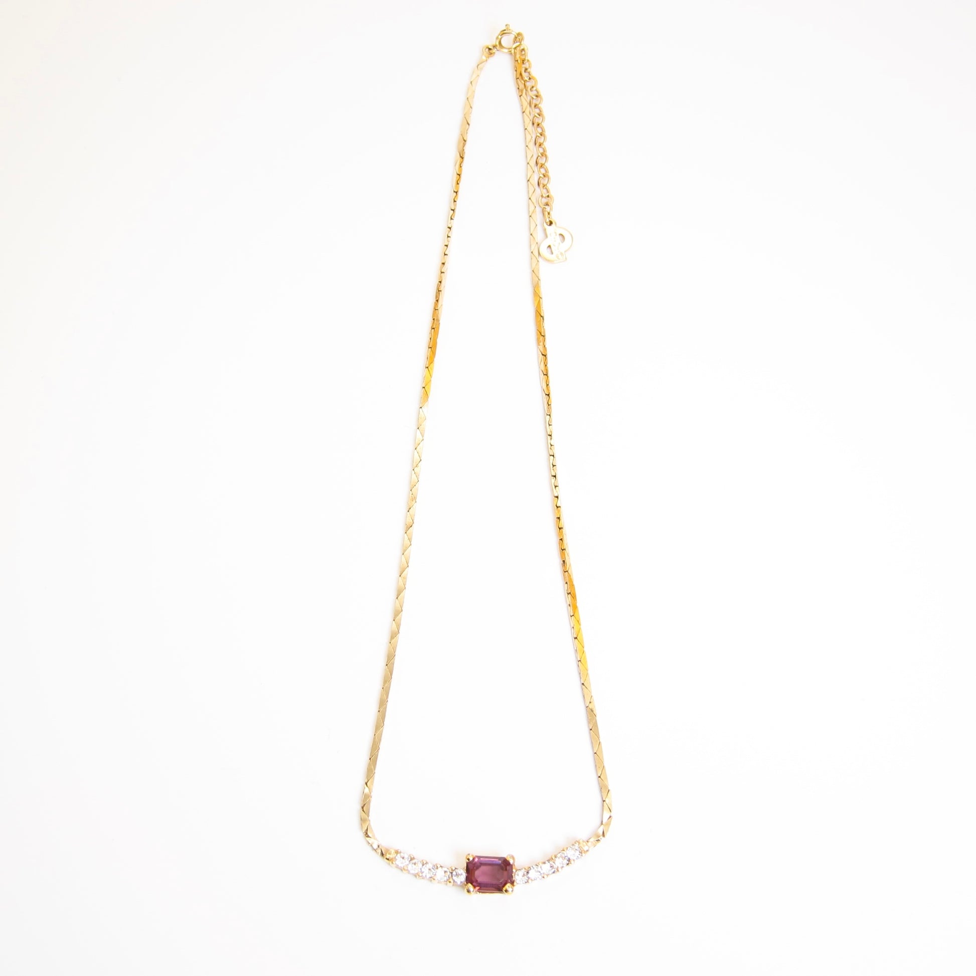 Christian Dior Vintage Purple Color Stone and Rhineatone Golden Necklace