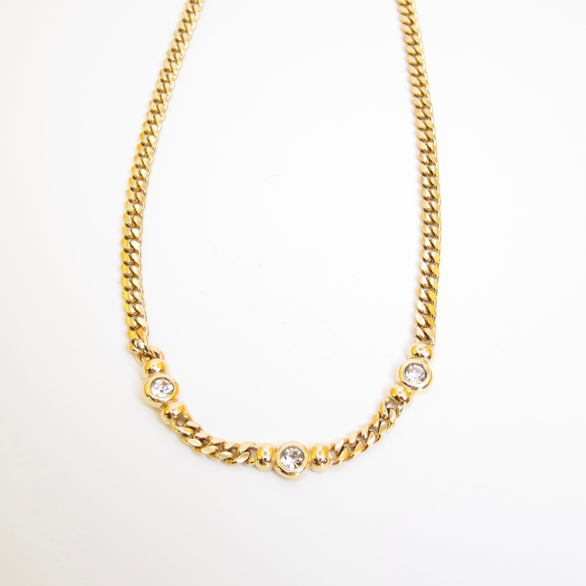 Christian Dior Vintage Rhinestone Golden Chain Necklace
