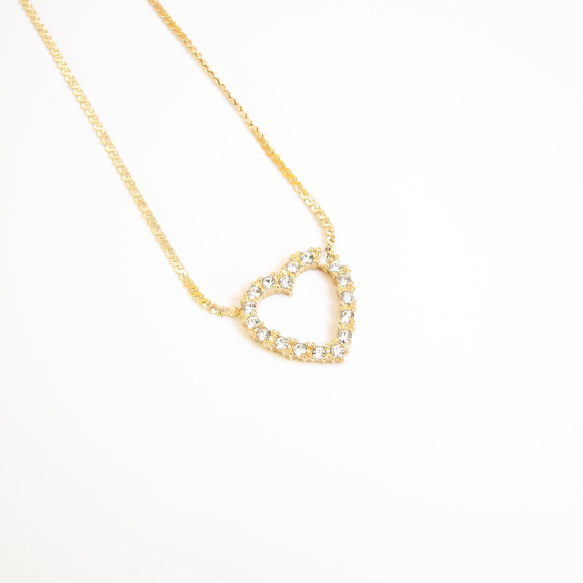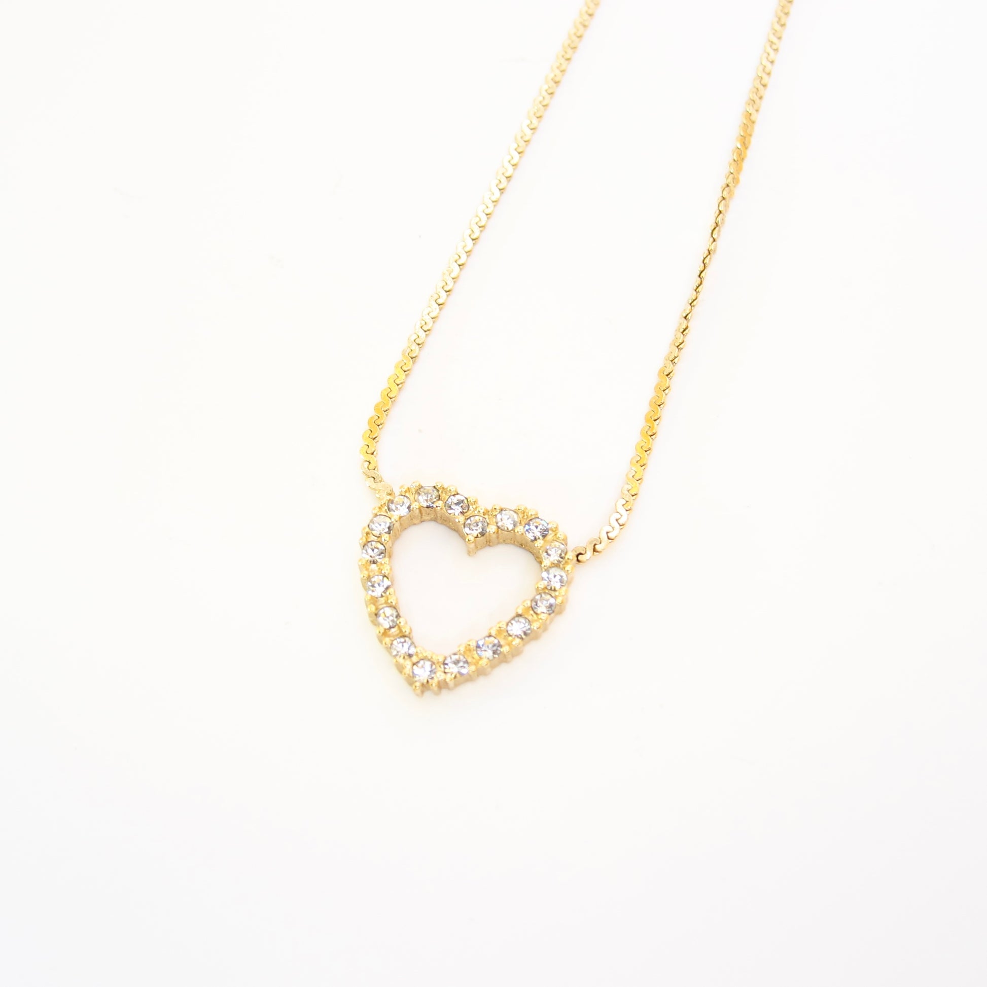 Christian Dior Vintage Heart Motif with Rhinestone Golden Necklace