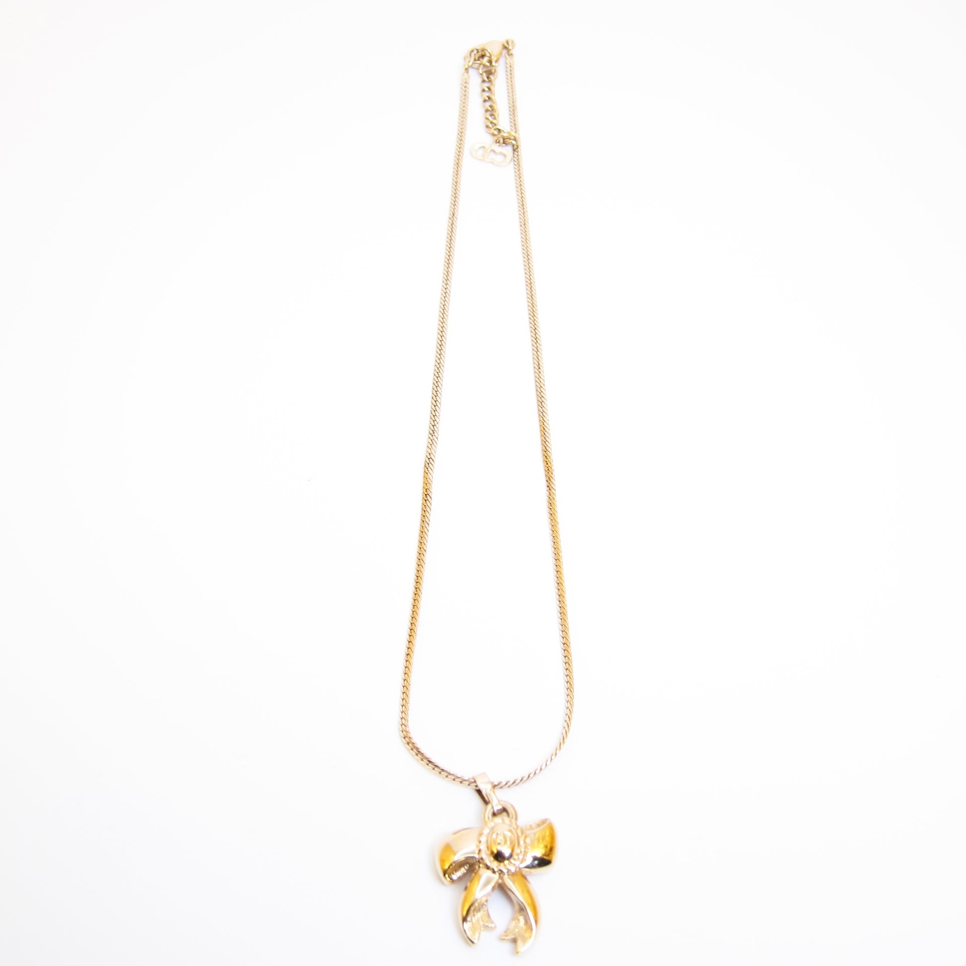 Christian Dior Vintage CD Logo on Ribbon Golden Necklace