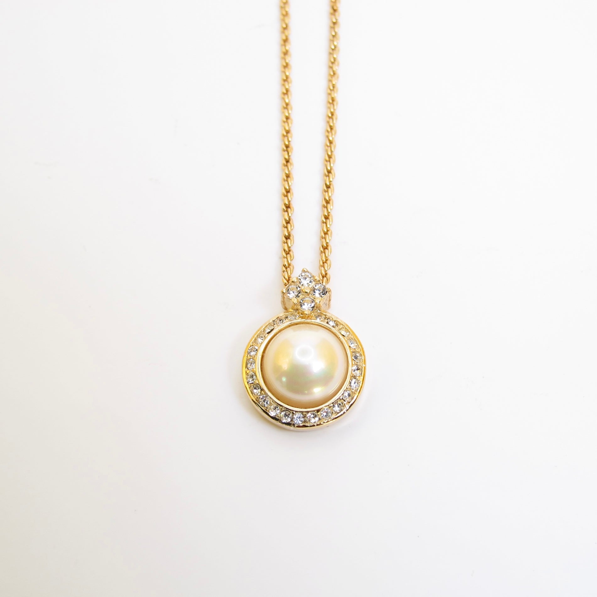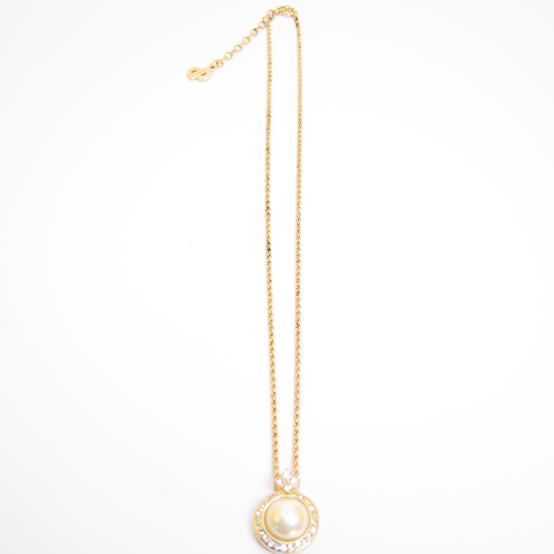 Christian Dior Vintage Pearl and Rhinestone Golden Necklace