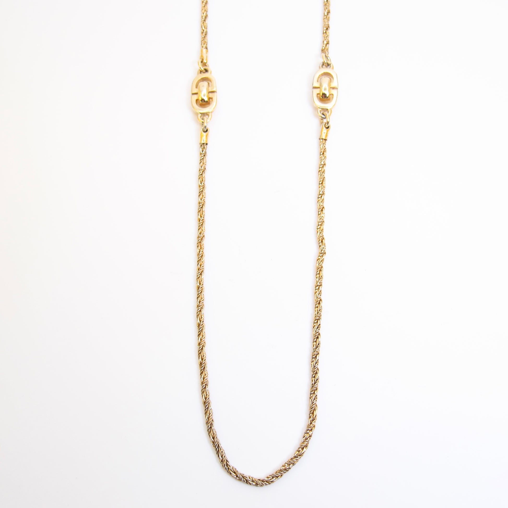 Christian Dior Vintage CD Logo Golden Long Necklace