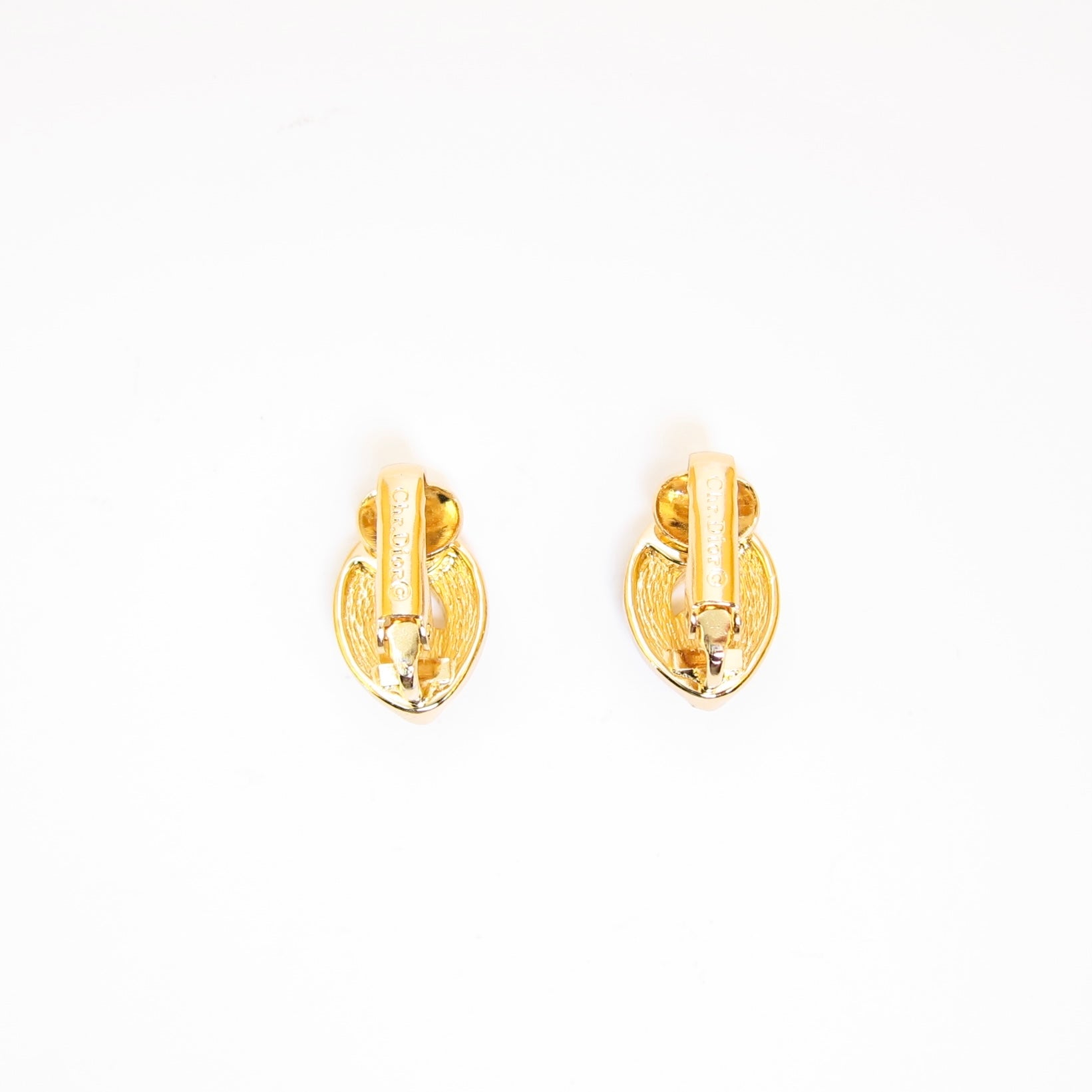 Christian Dior Vintage Oval Shape and Rhinestone Golden Clip-on Earrings