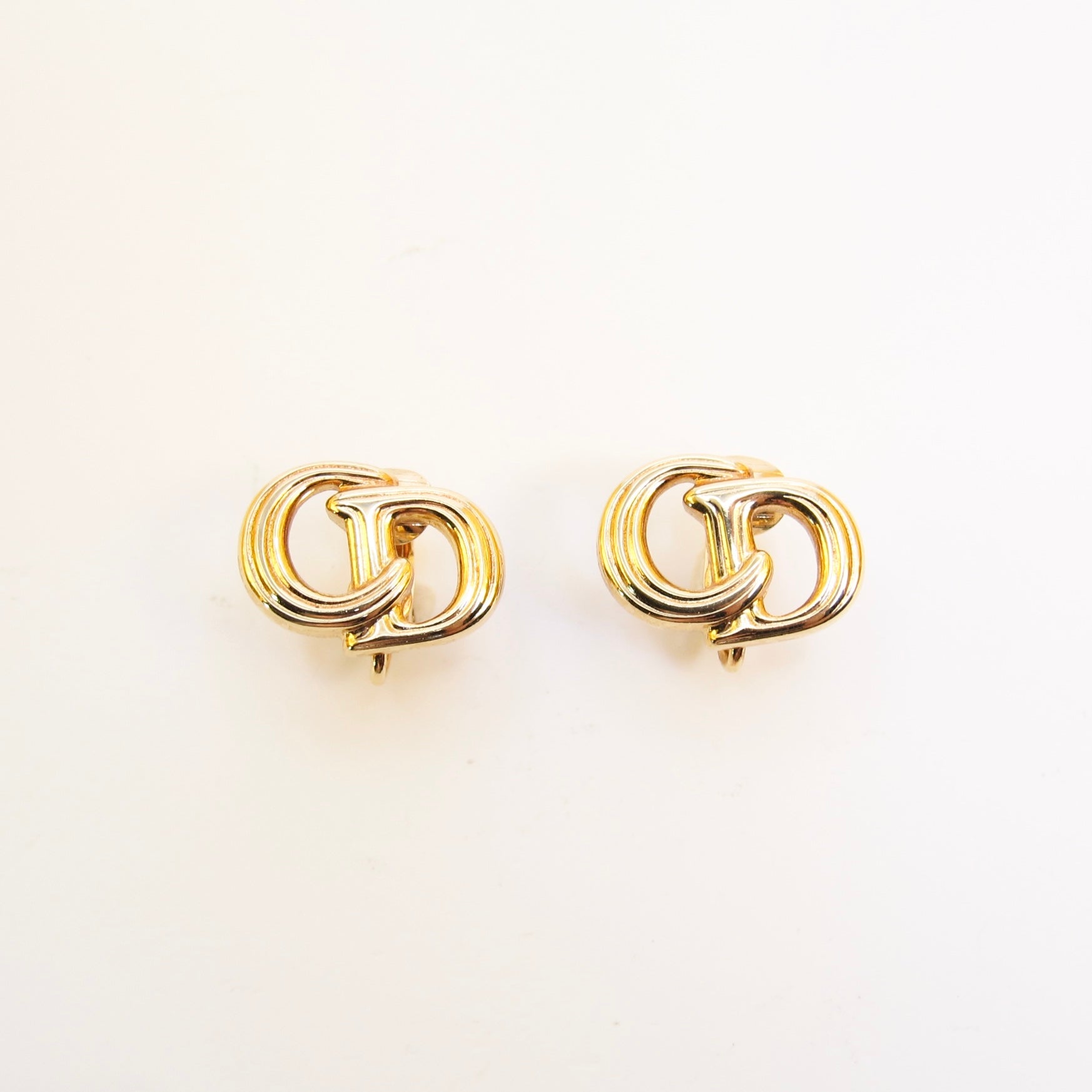Christian Dior Vintage CD Logo Golden Clip-on Earrings
