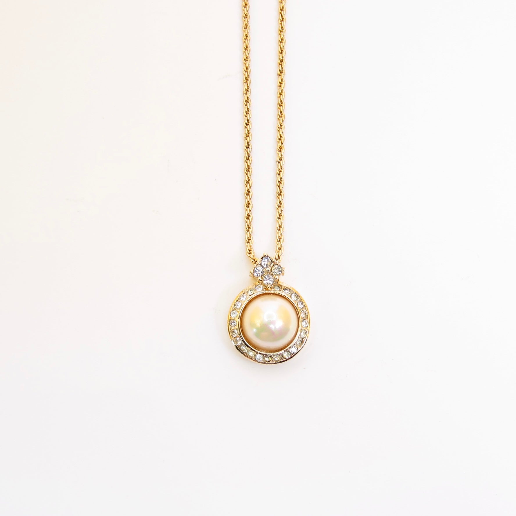 Christian Dior Vintage Pearl and Rhinestone Golden Necklace