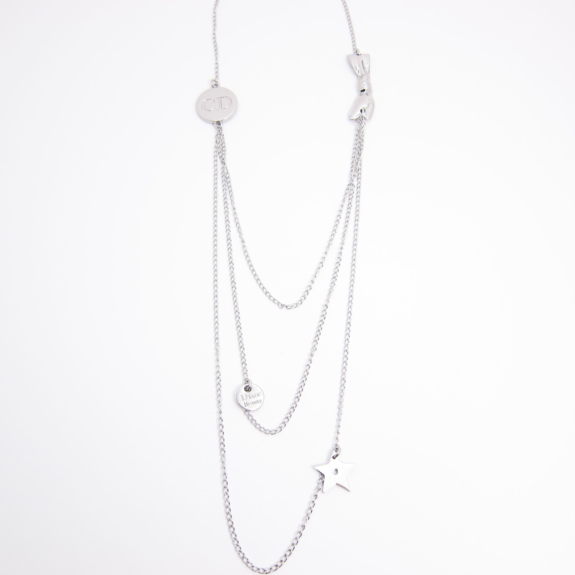 Christian Dior Vintage CD Logo and Charms Silver Long Necklace