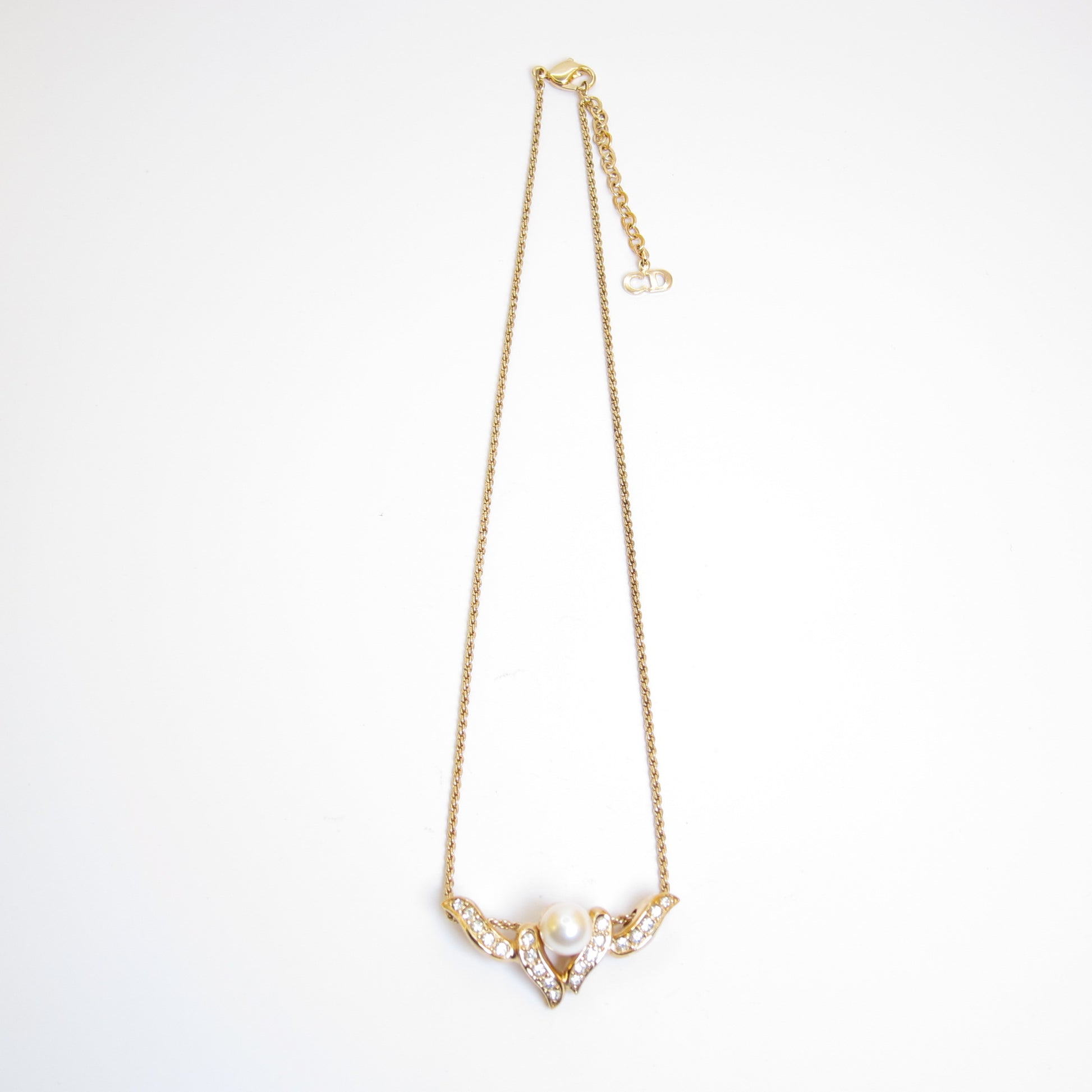 Christian Dior Vintage Pearl and Rhinestone Golden Necklace