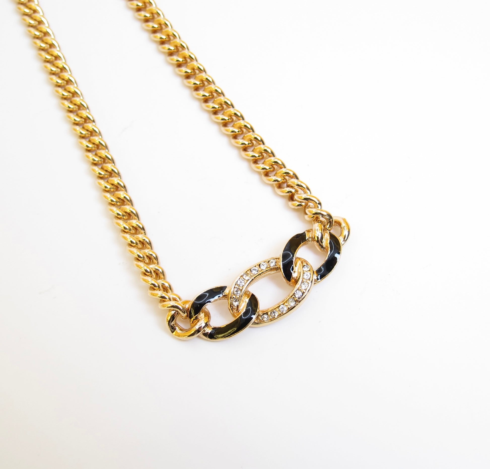 Christian Dior Vintage Black and Rhinestone Golden Necklace