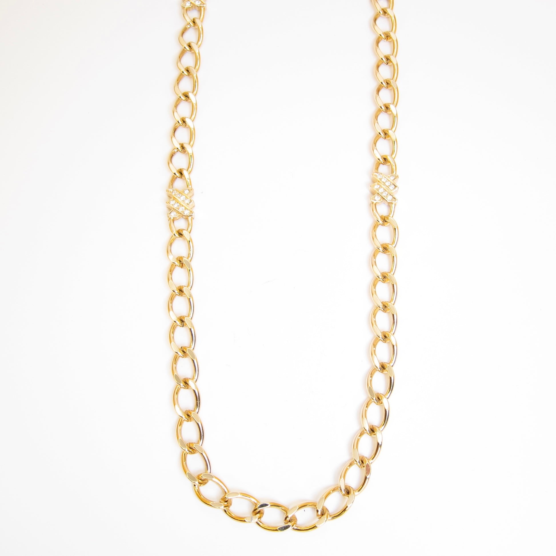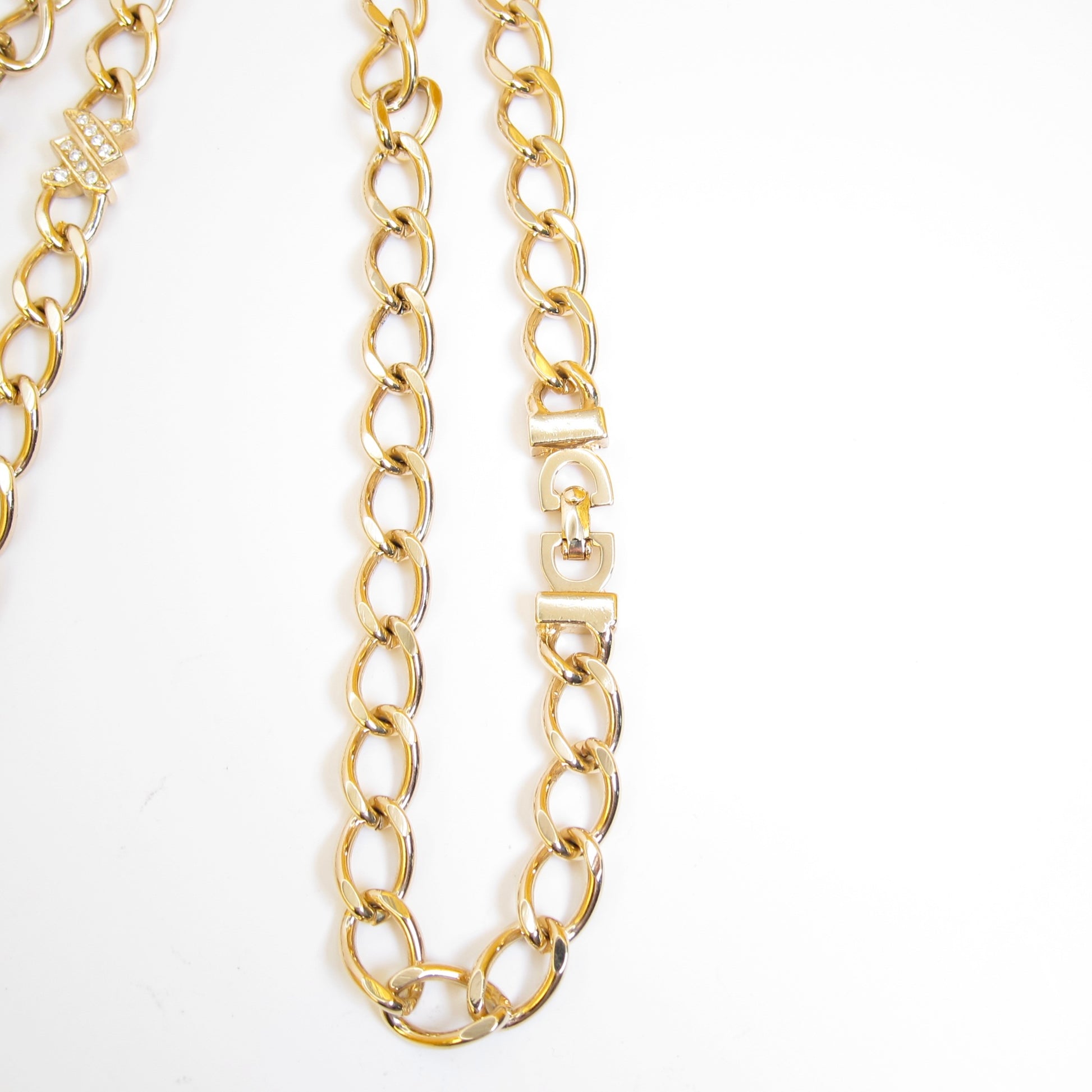 Christian Dior Vintage Stylish Chain Link and Rhinestone Golden Long Necklace