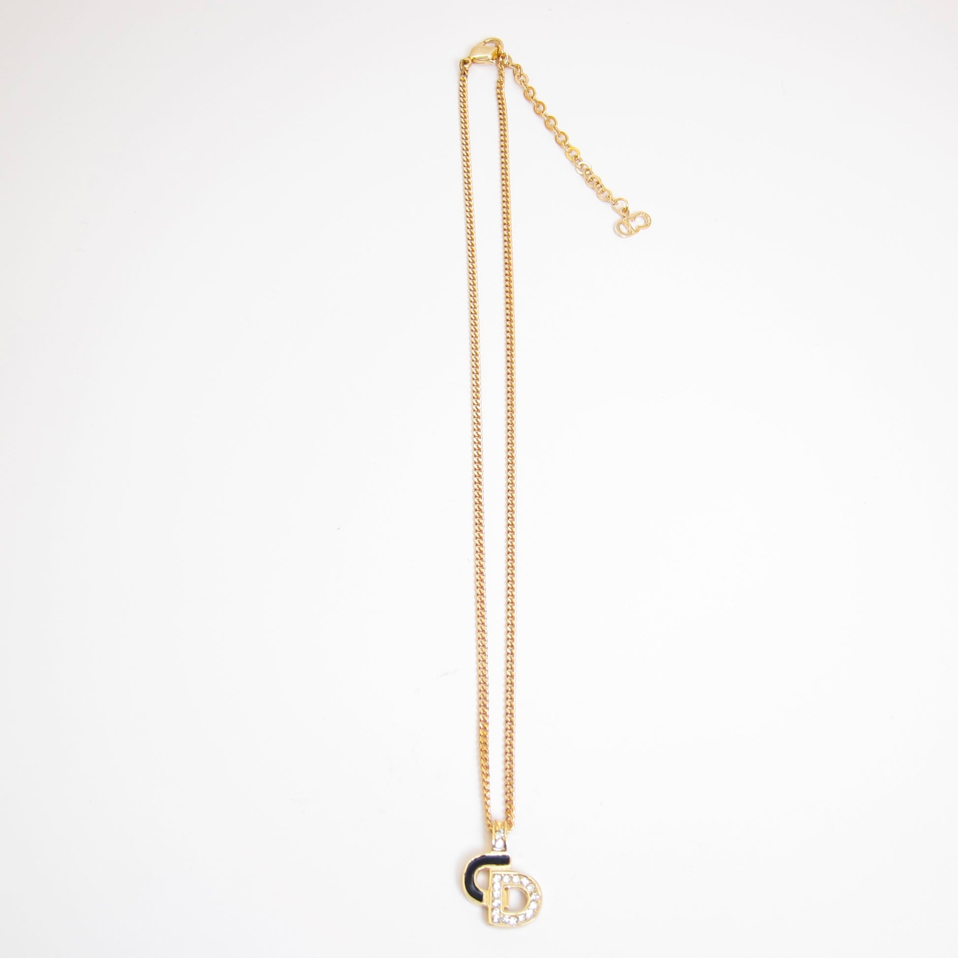 Christian Dior Vintage CD Logo with Black and Rhinestone Golden Necklace