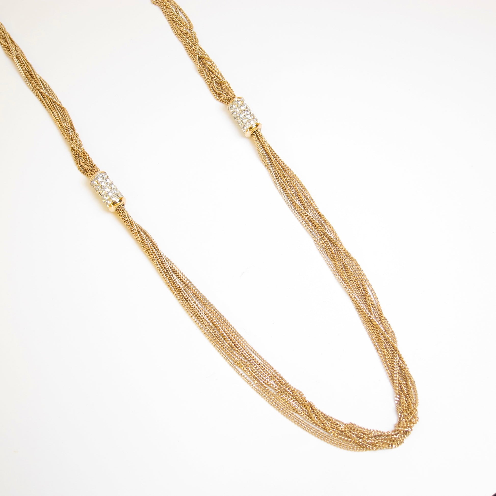 Givenchy Vintage Stylish Rhinestone Golden Long Necklace