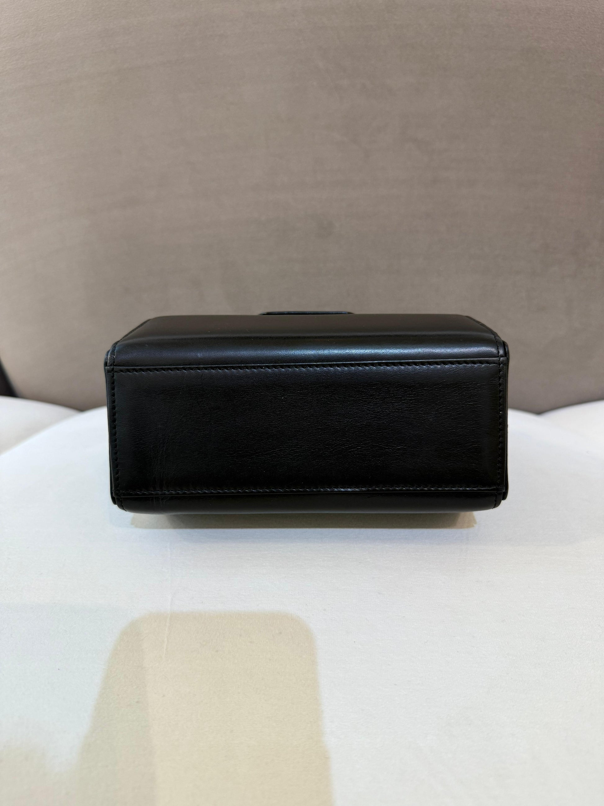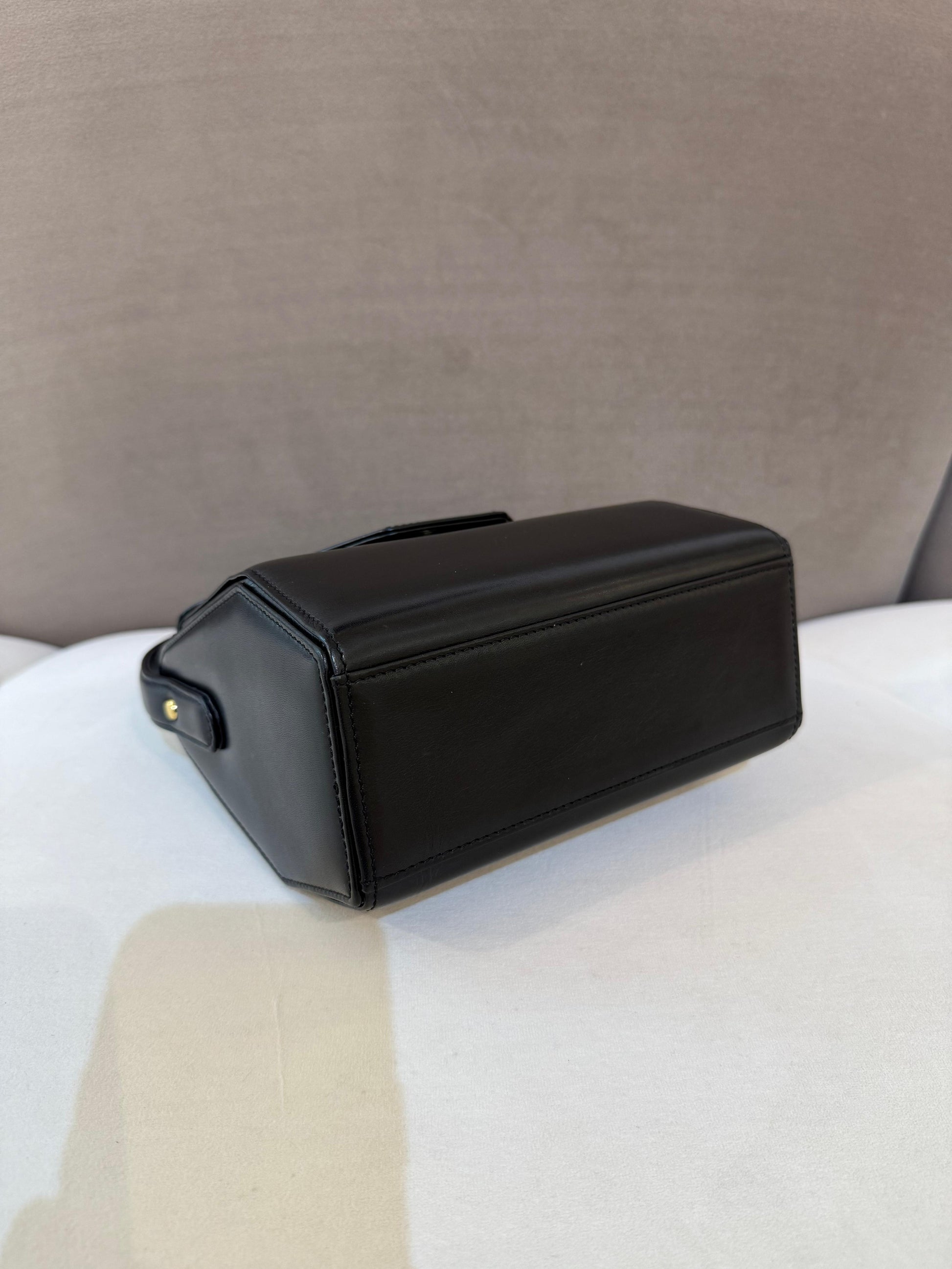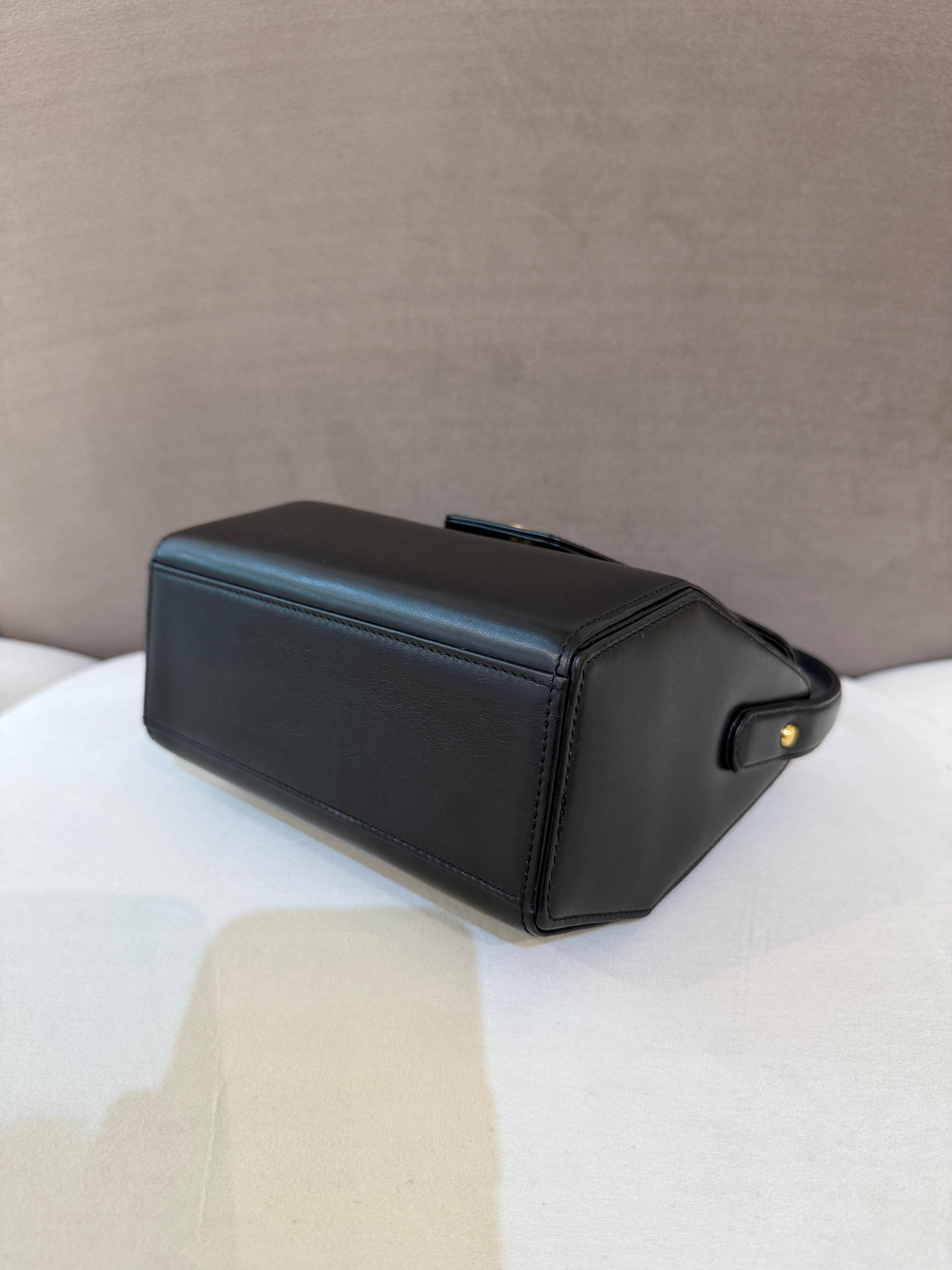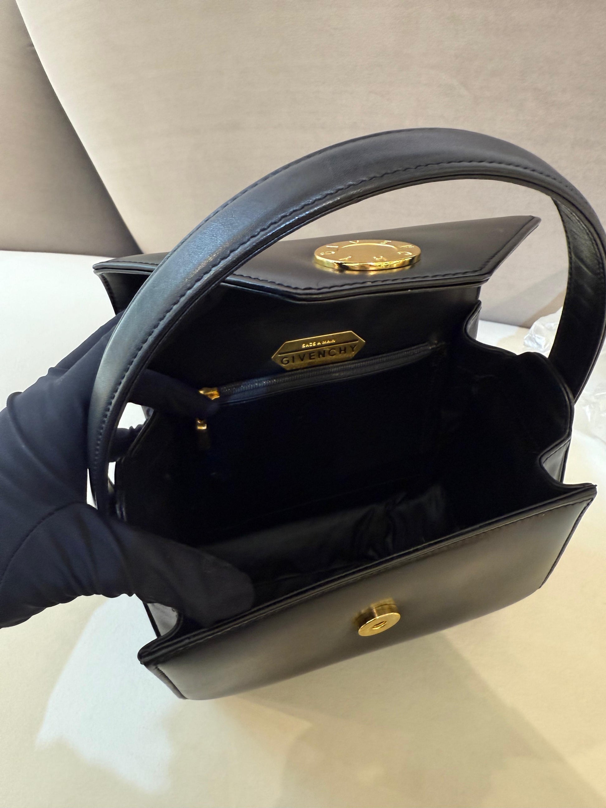 Givenchy Vintage Black Leather Gold Medallion Top Handle Bag