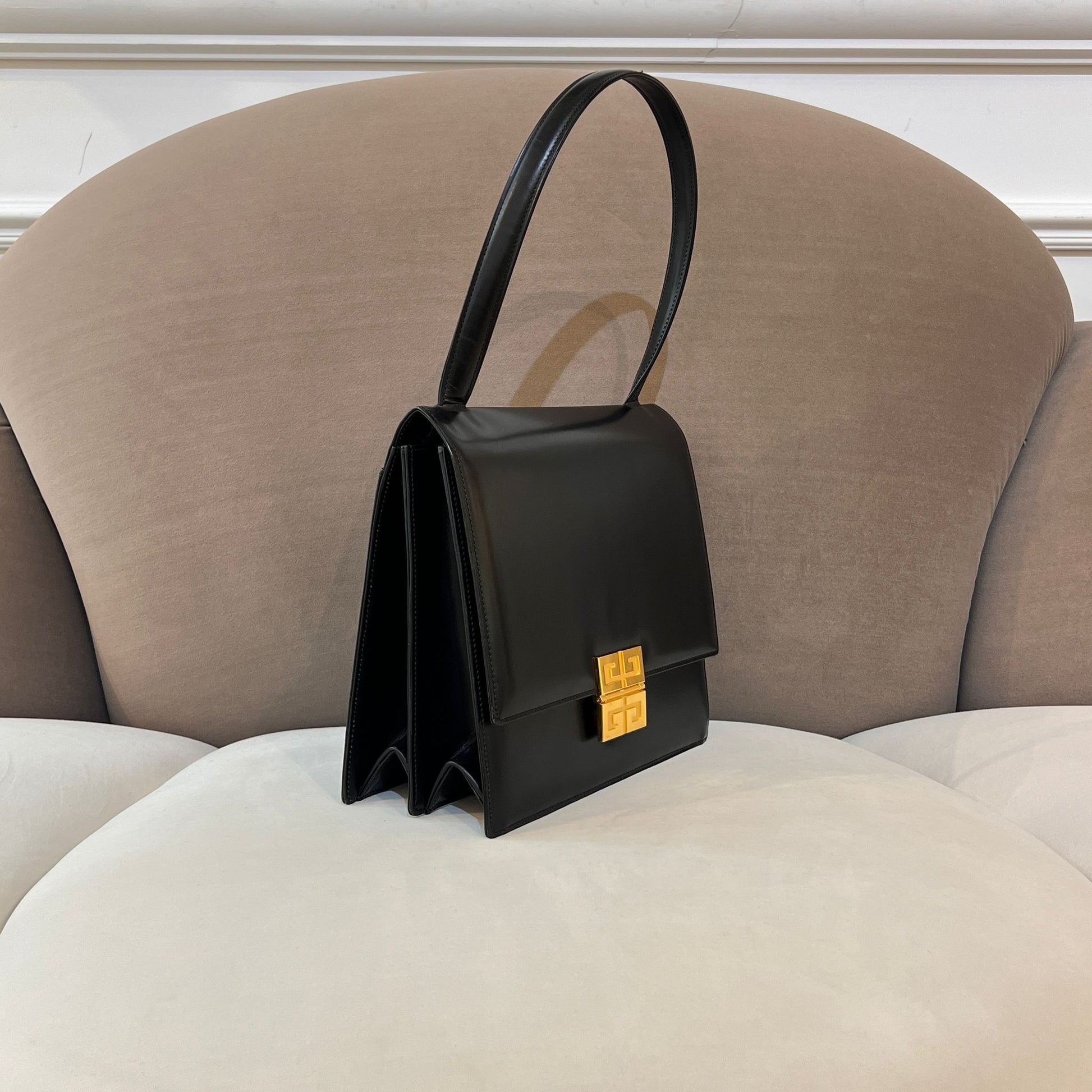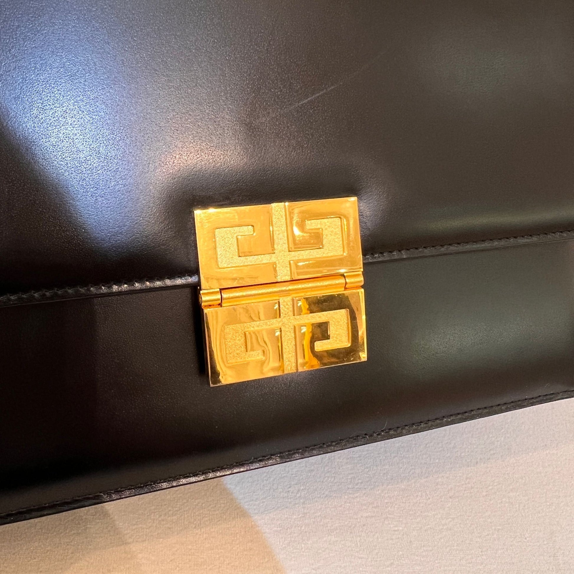 Givenchy Vintage 4G Logo Black Smooth Leather Shoulder Bag