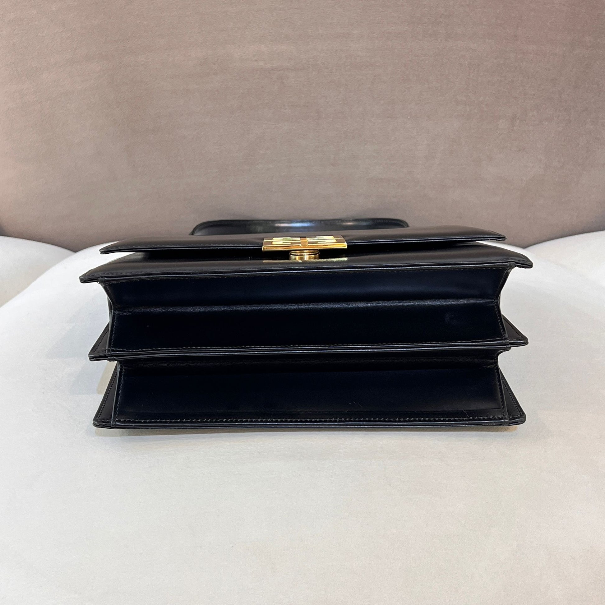 This vintage Givenchy shoulder bag embodies the Maison’s minimalist geometry — crafted in sleek black calf leather with the signature 4G clasp, symbolizing balance and sophistication.