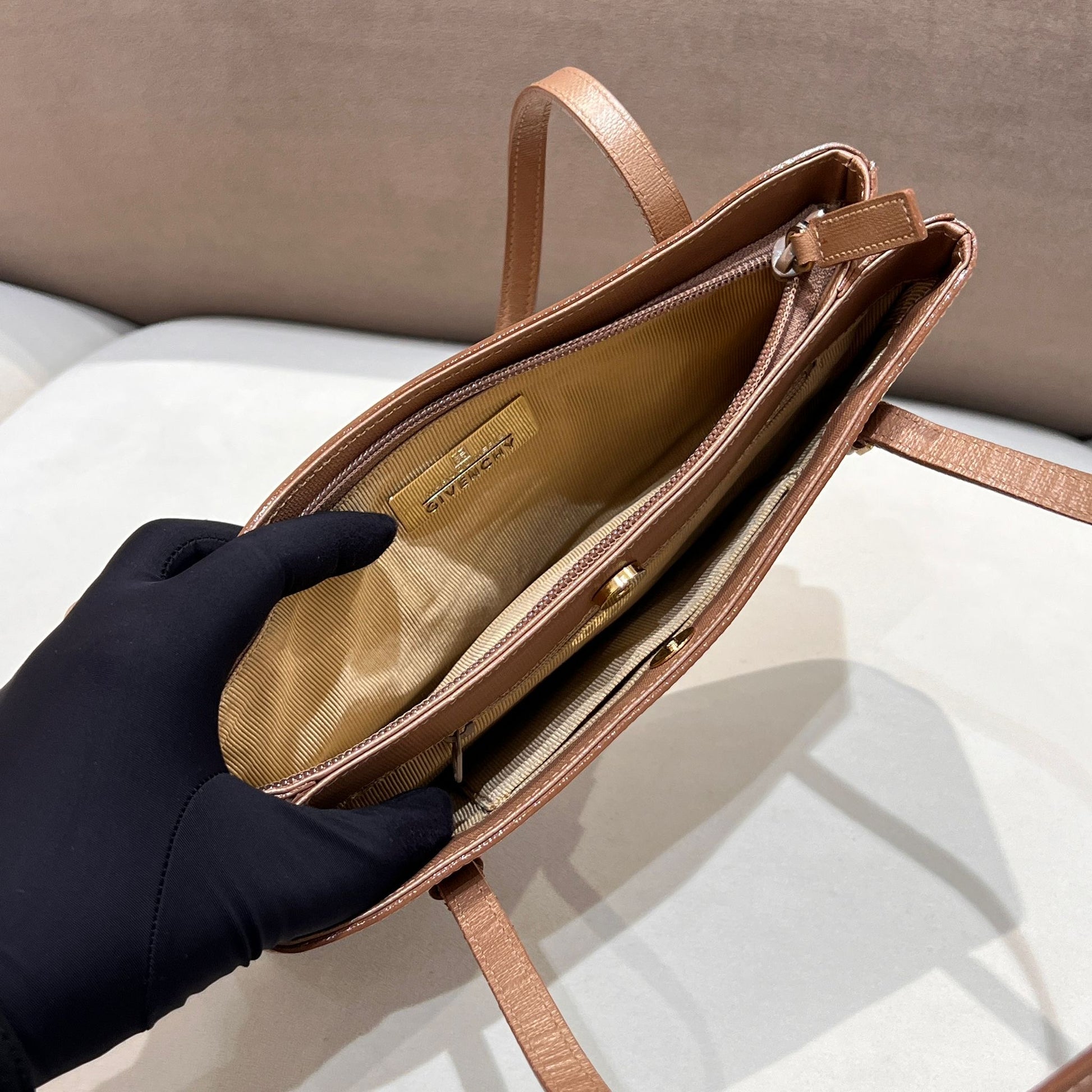 這款古董級 Givenchy 肩背袋完美呈現 1990 年代初期的低調奢華,以少見的香檳粉皮革打造,散發柔和而高雅的女性氣息。極簡袋型結合金色金屬點綴,體現品牌當年強調的俐落線條與法式精緻美學。