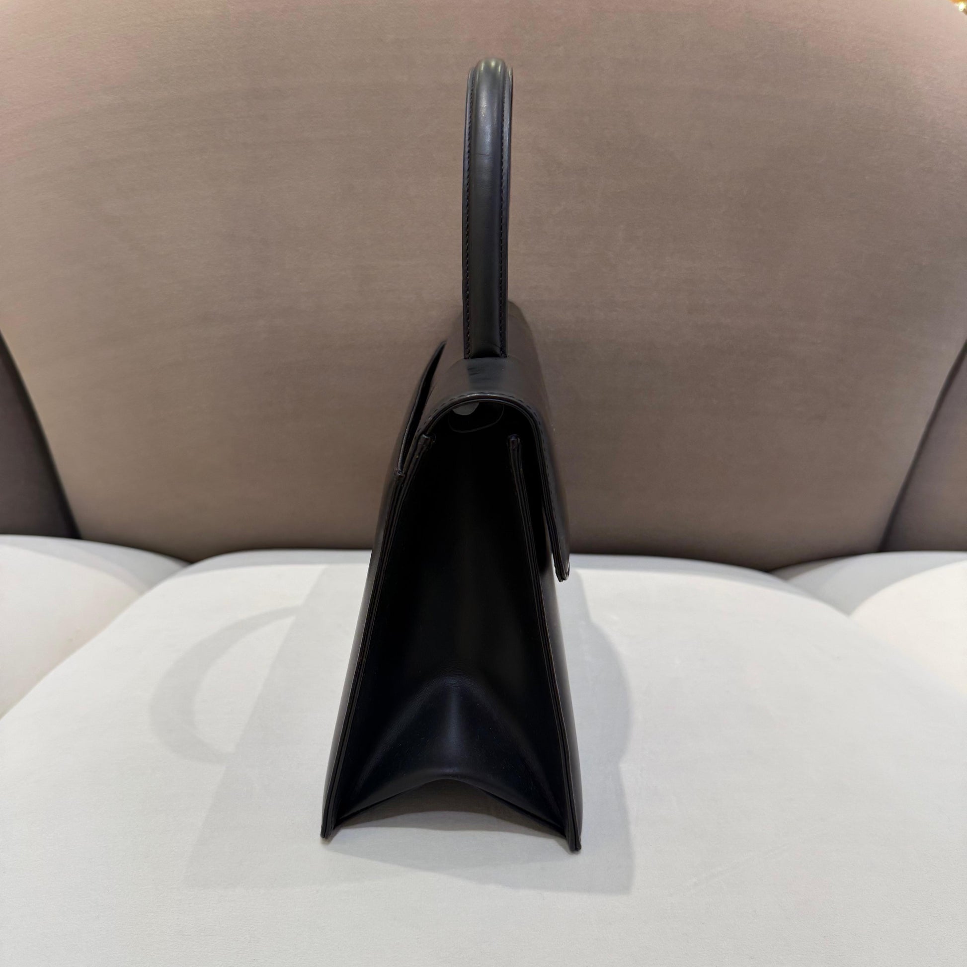 Smooth Black Leather With Elongated Rectangular Silhouette