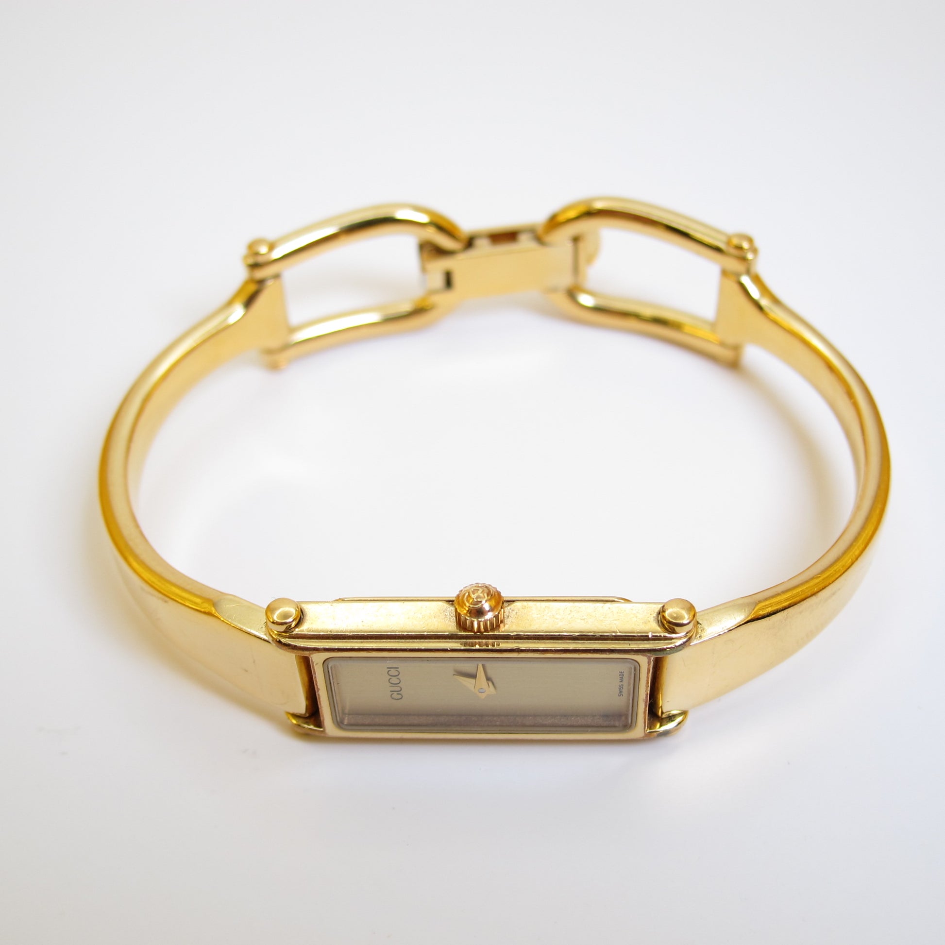 Gucci Vintage Rectangle Golden Face Bangle Watch