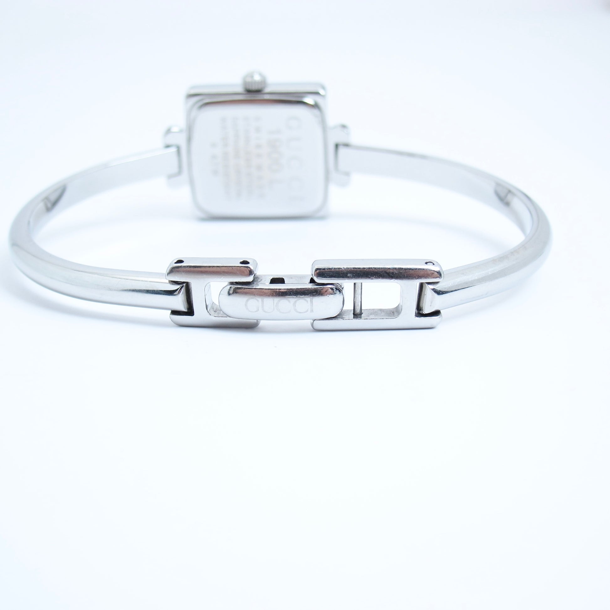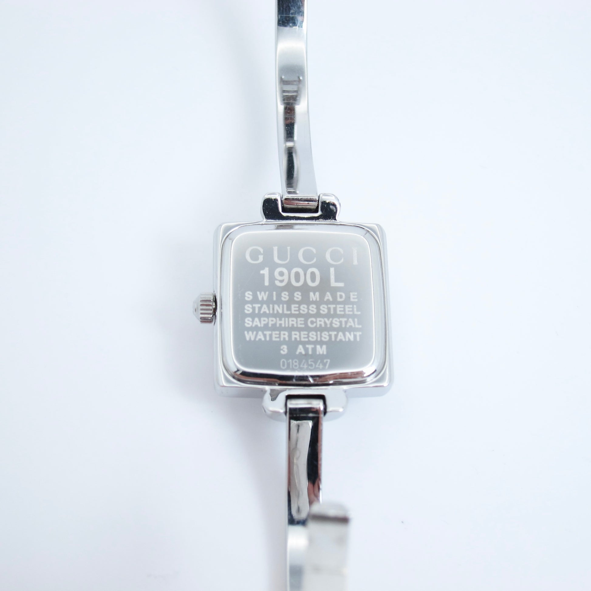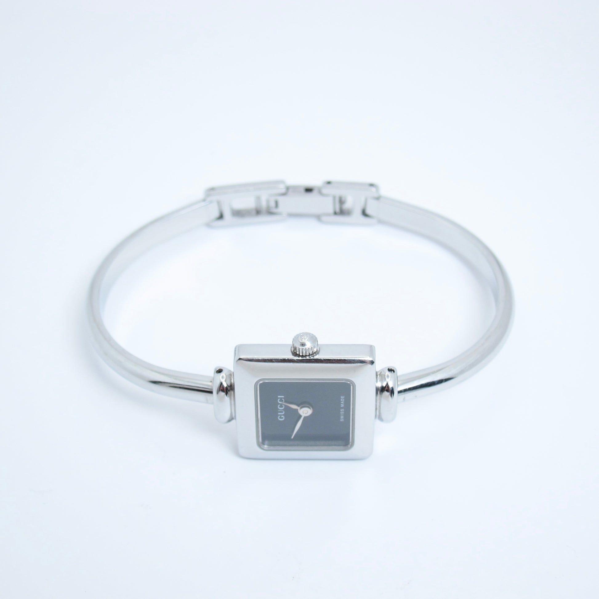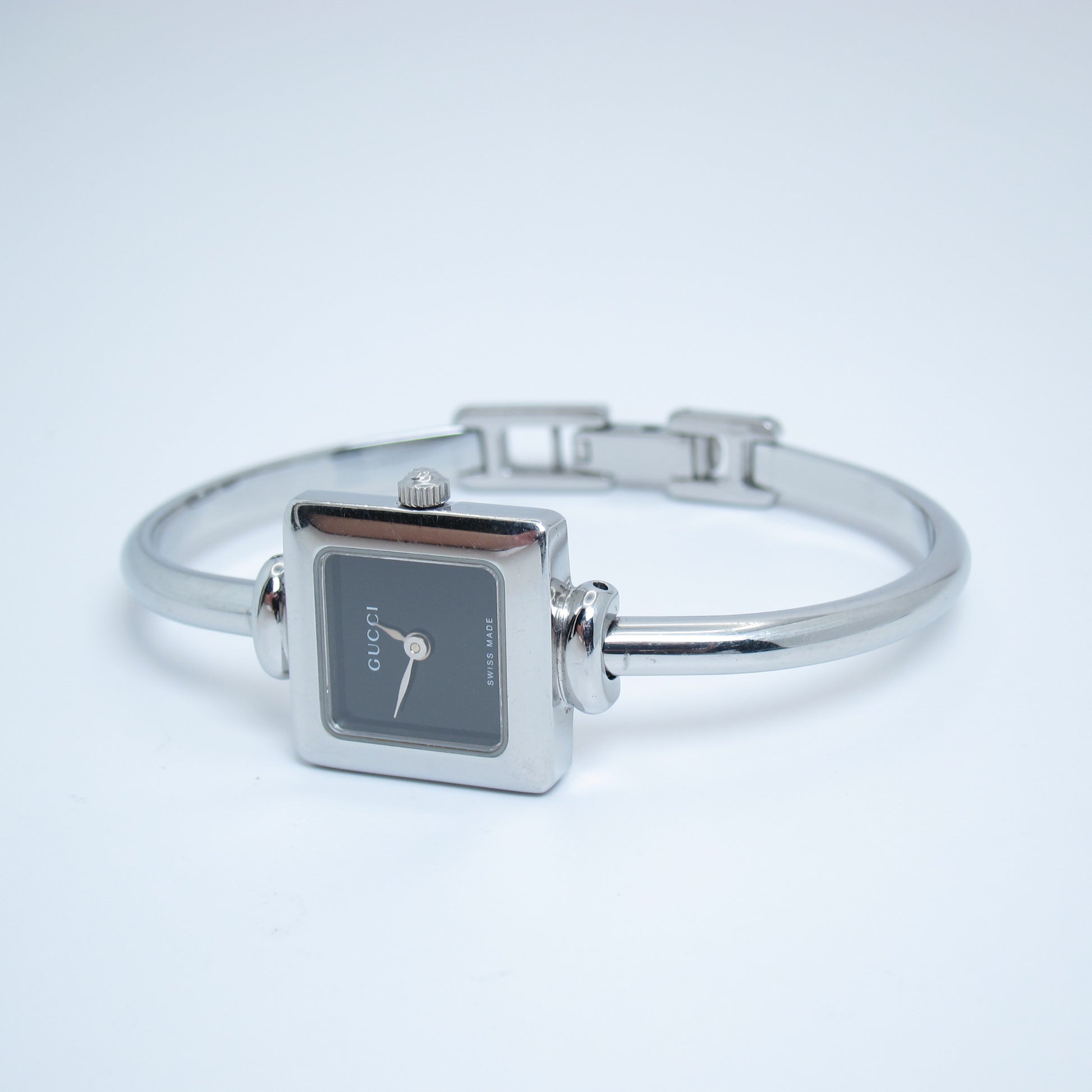Gucci Vintage Square Black Face Silver Bangle Watch
