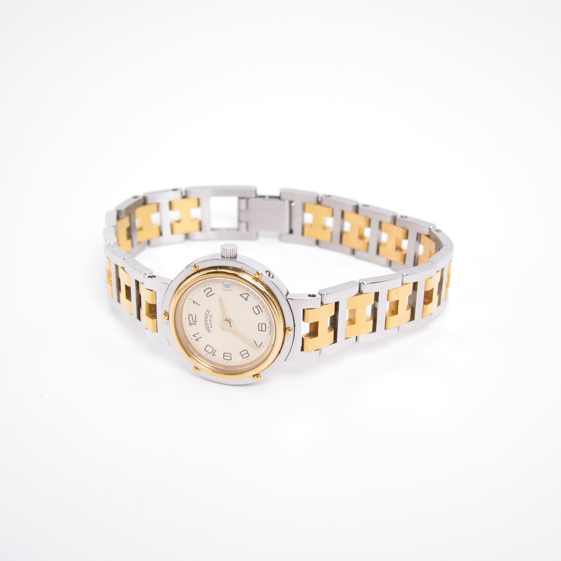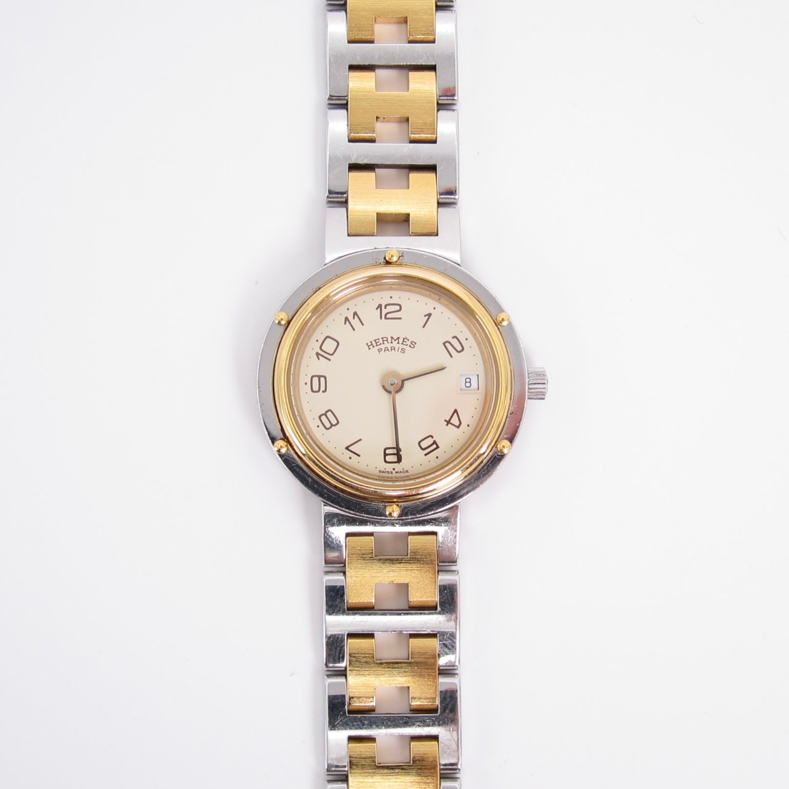 Hermes Vintage Clipper Ivory Dial with Date and H Bracelet Two Tone Watch