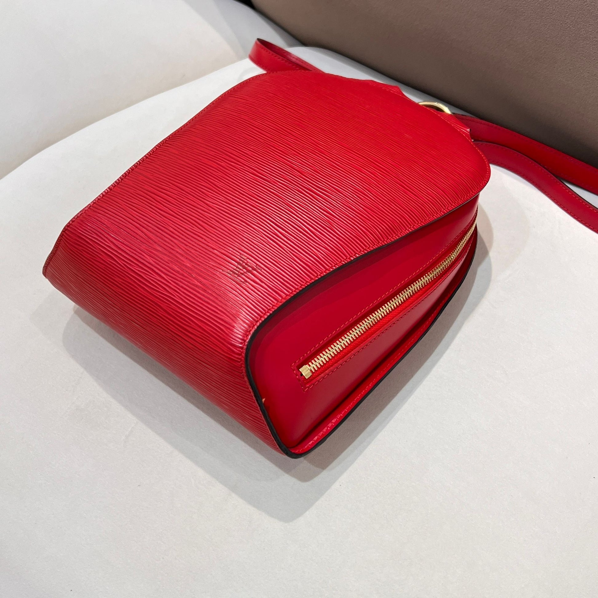 The Epi line was first introduced in 1985 as Louis Vuitton’s first permanent leather collection. Its signature textured waves were inspired by archival LV trunks from the 1920s. Castilian Red is among the most collectible Epi colors, produced in limited years and highly sought after by vintage collectors today.