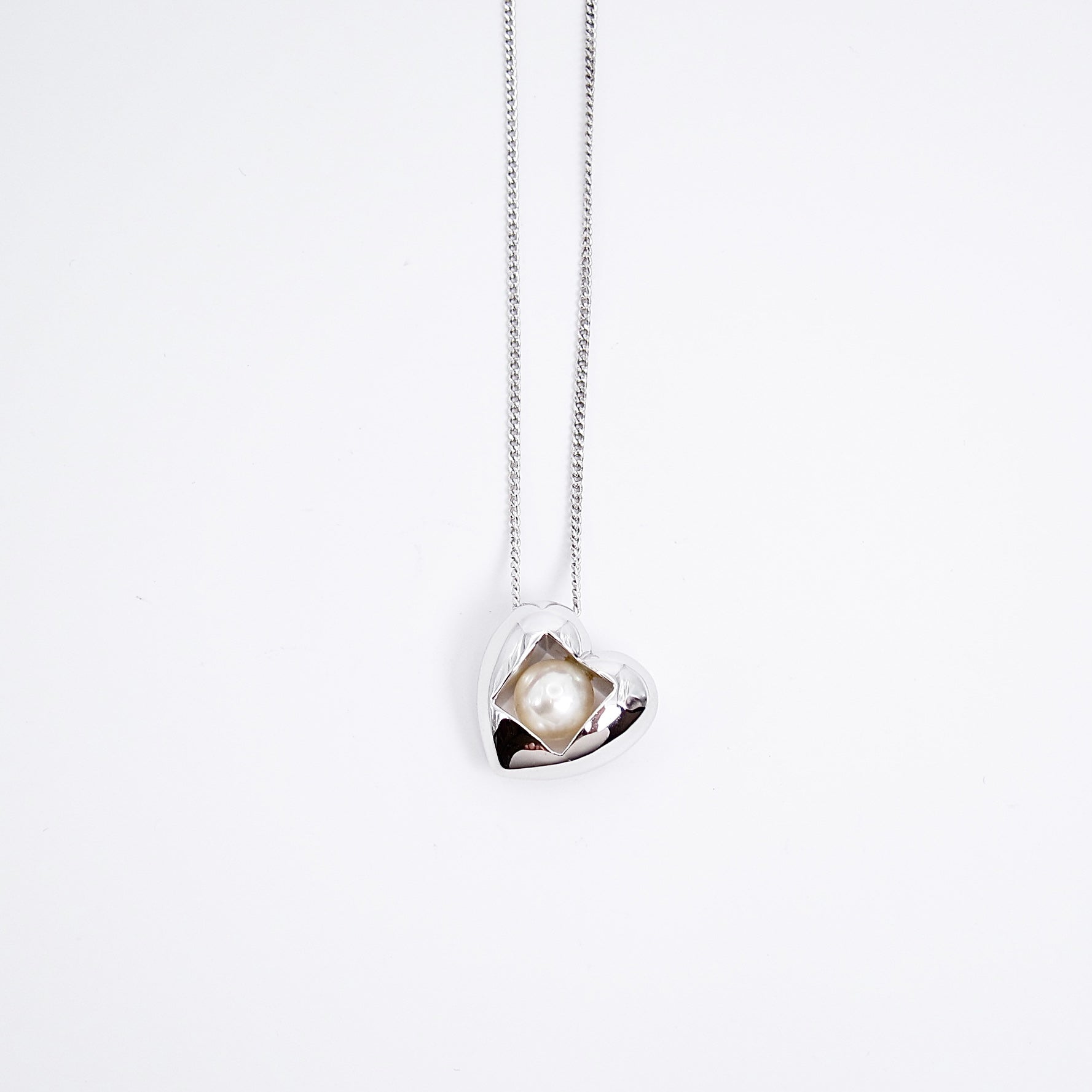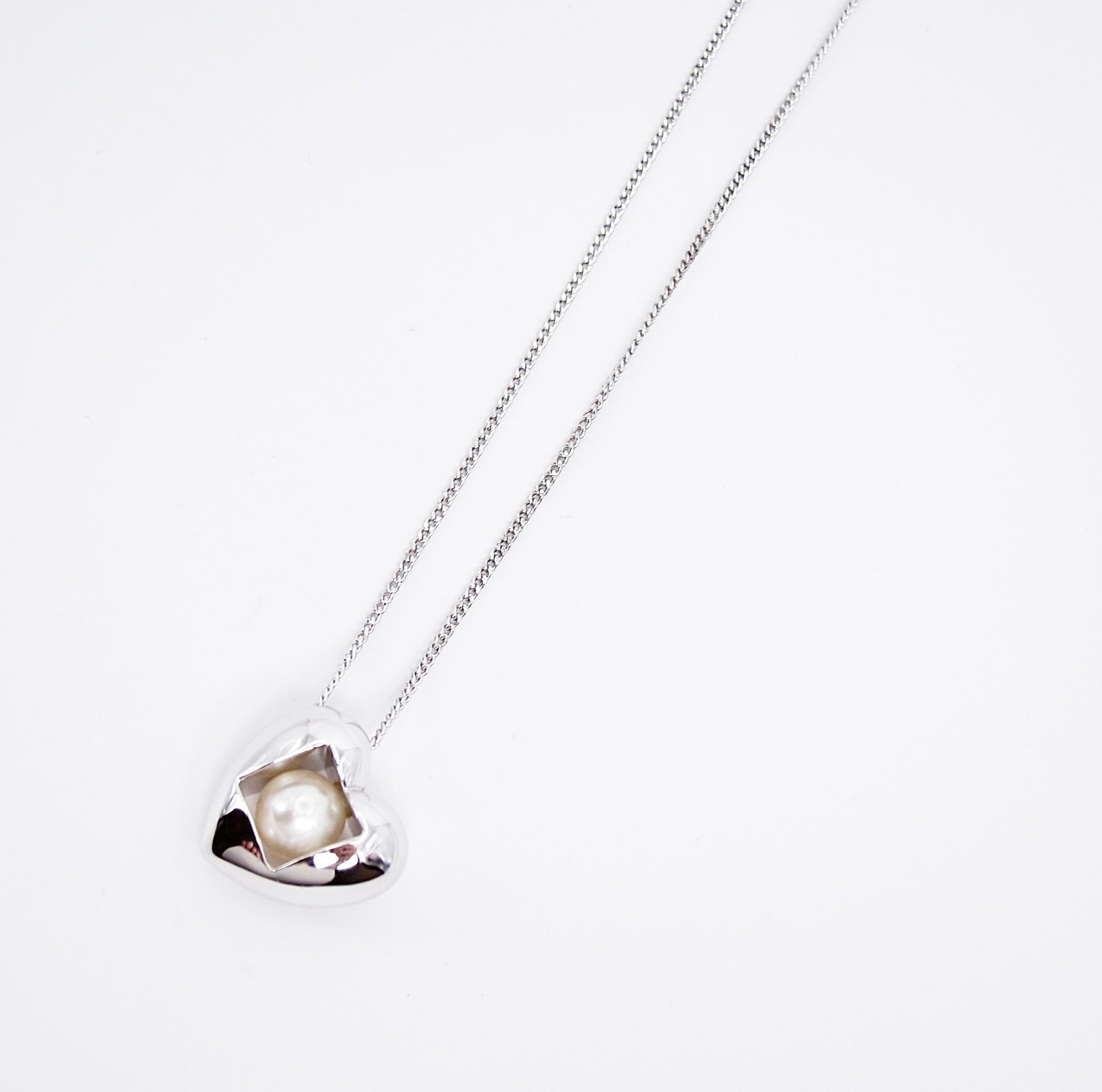 Mikimoto Vintage Akoya Pearl in Heart Silver Necklace