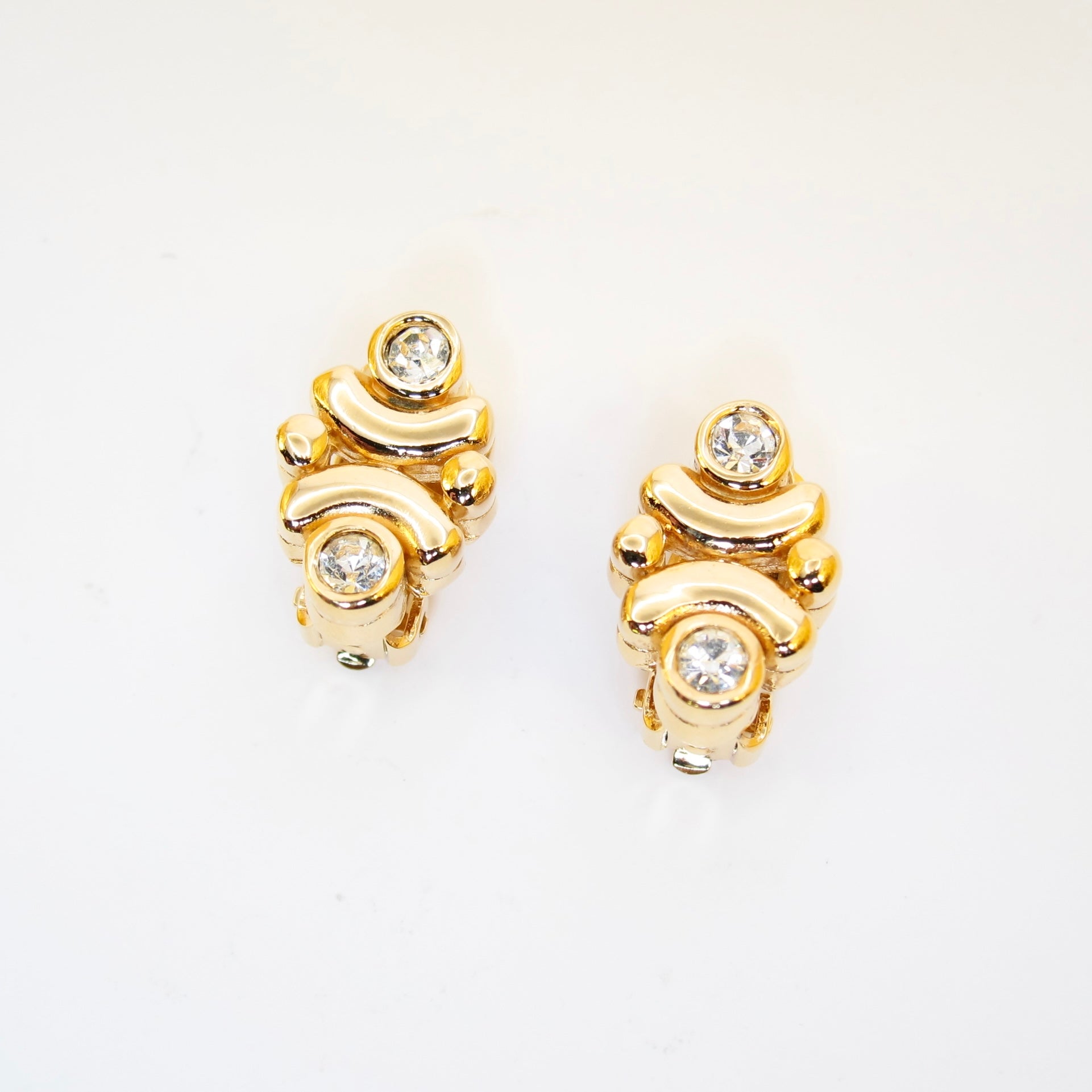 Nina Ricci Vintage Stylish Rhinestone and Golden Clip-on Earrings