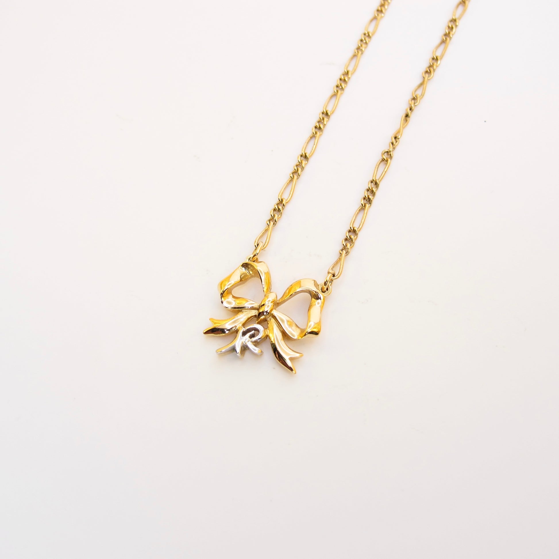 Nina Ricci Vintage NR Logo with Ribbon Golden Necklace