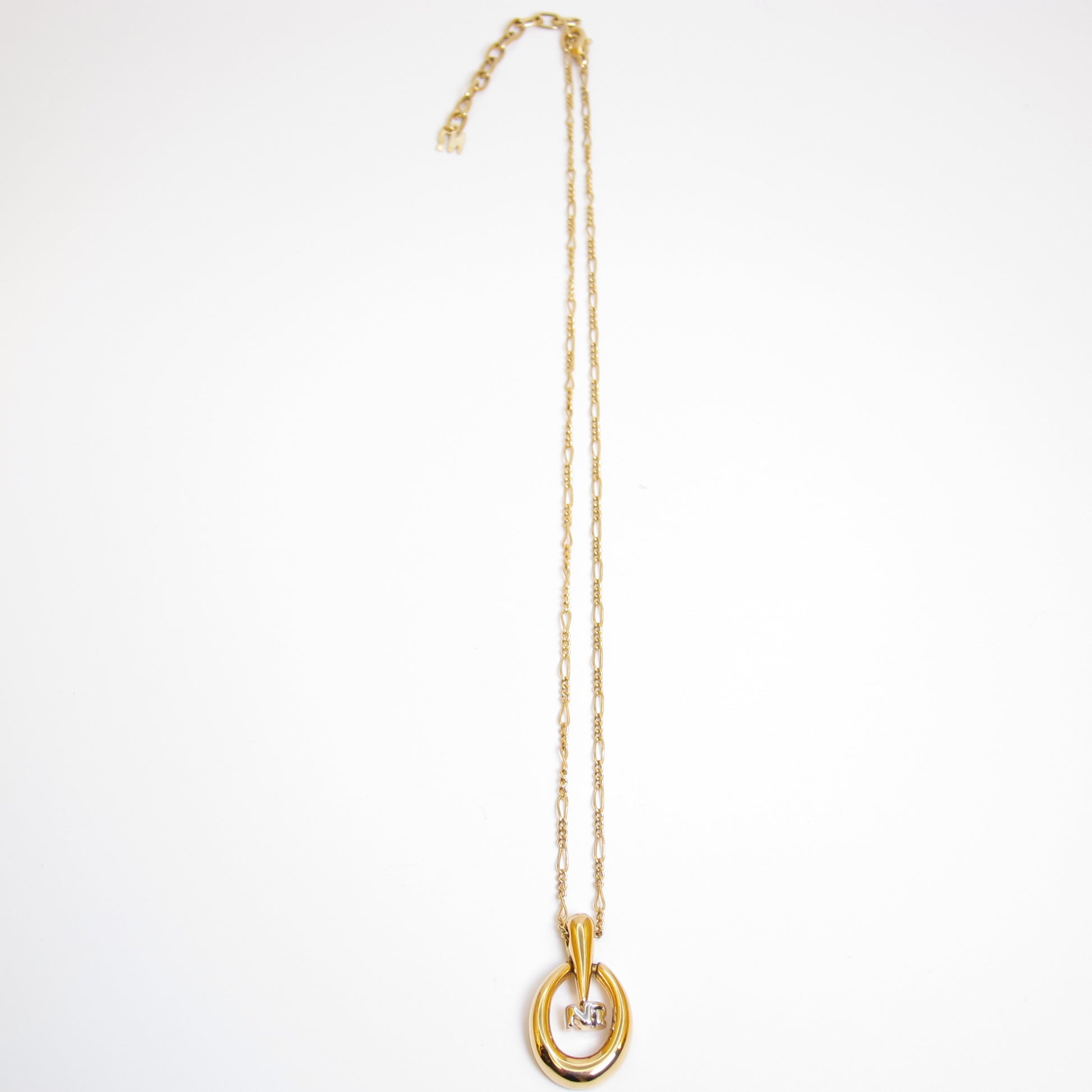 Nina Ricci Vintage NR Logo in Swing Oval Shape Golden Necklace