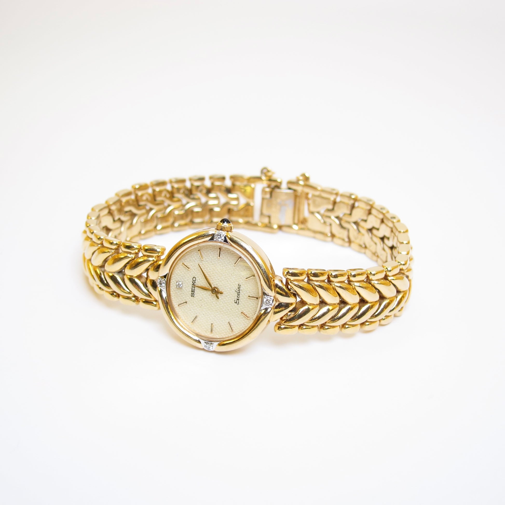 Seiko Vintage Exceline Round Ivory Glittering Face with Diamond Golden Watch