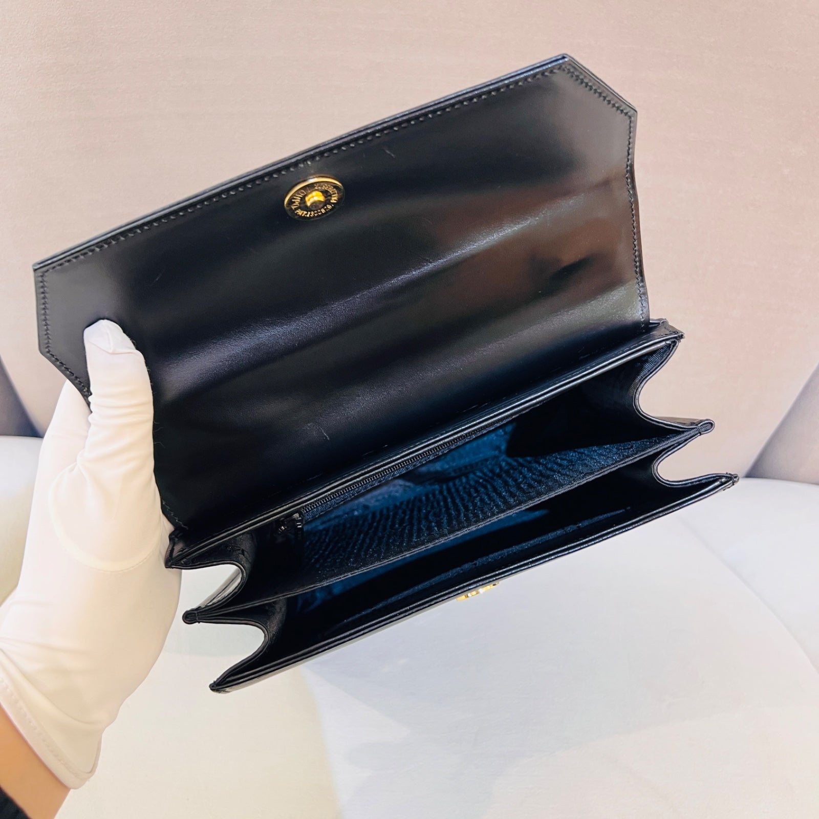 雋永黑色袋身百搭易襯,適合正裝、晚宴或優雅休閒造型。即使缺少肩帶,依然是一款散發復古格調的典雅手袋。