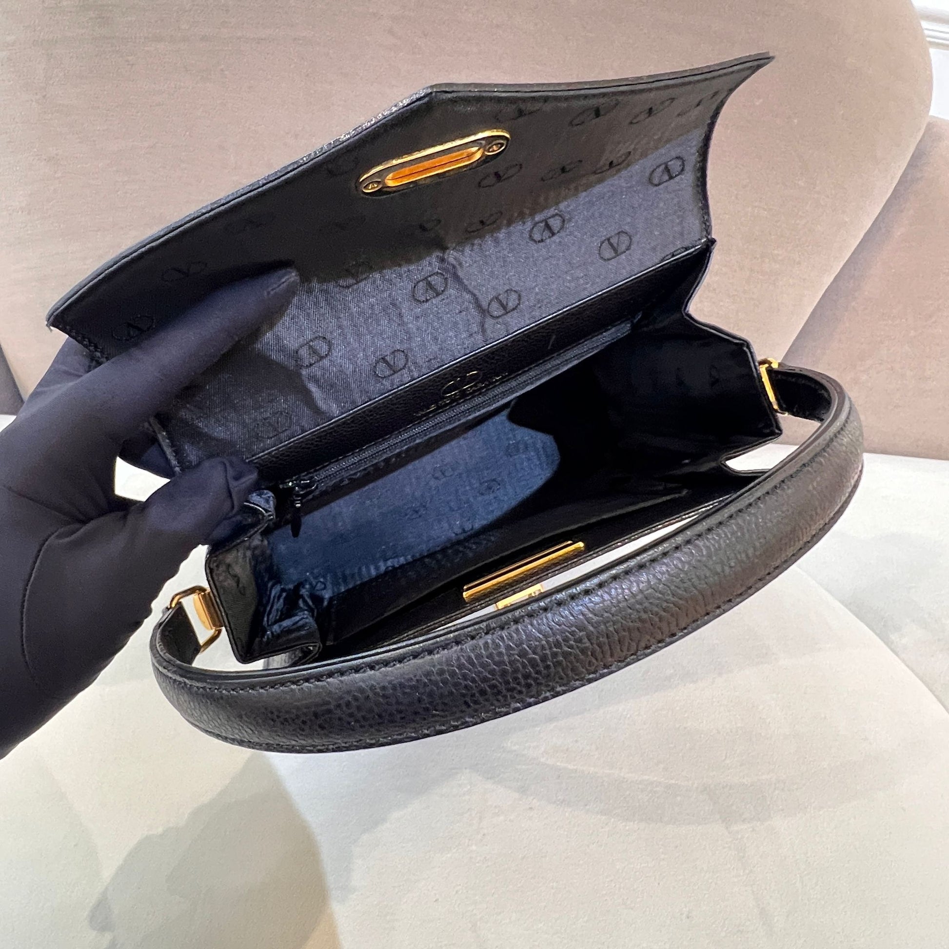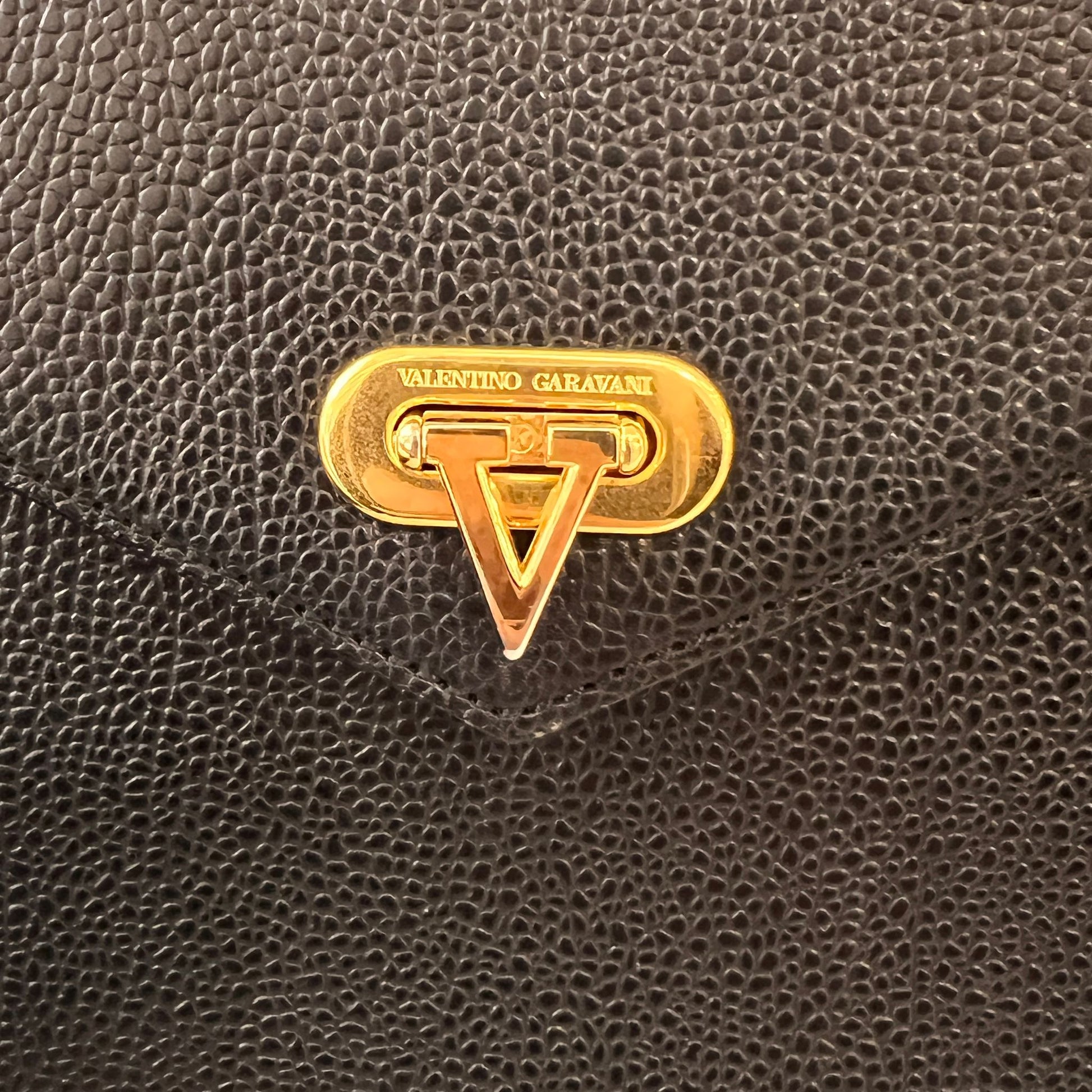 Valentino Garavani Vintage Black Leather V Logo Top Handle Bag