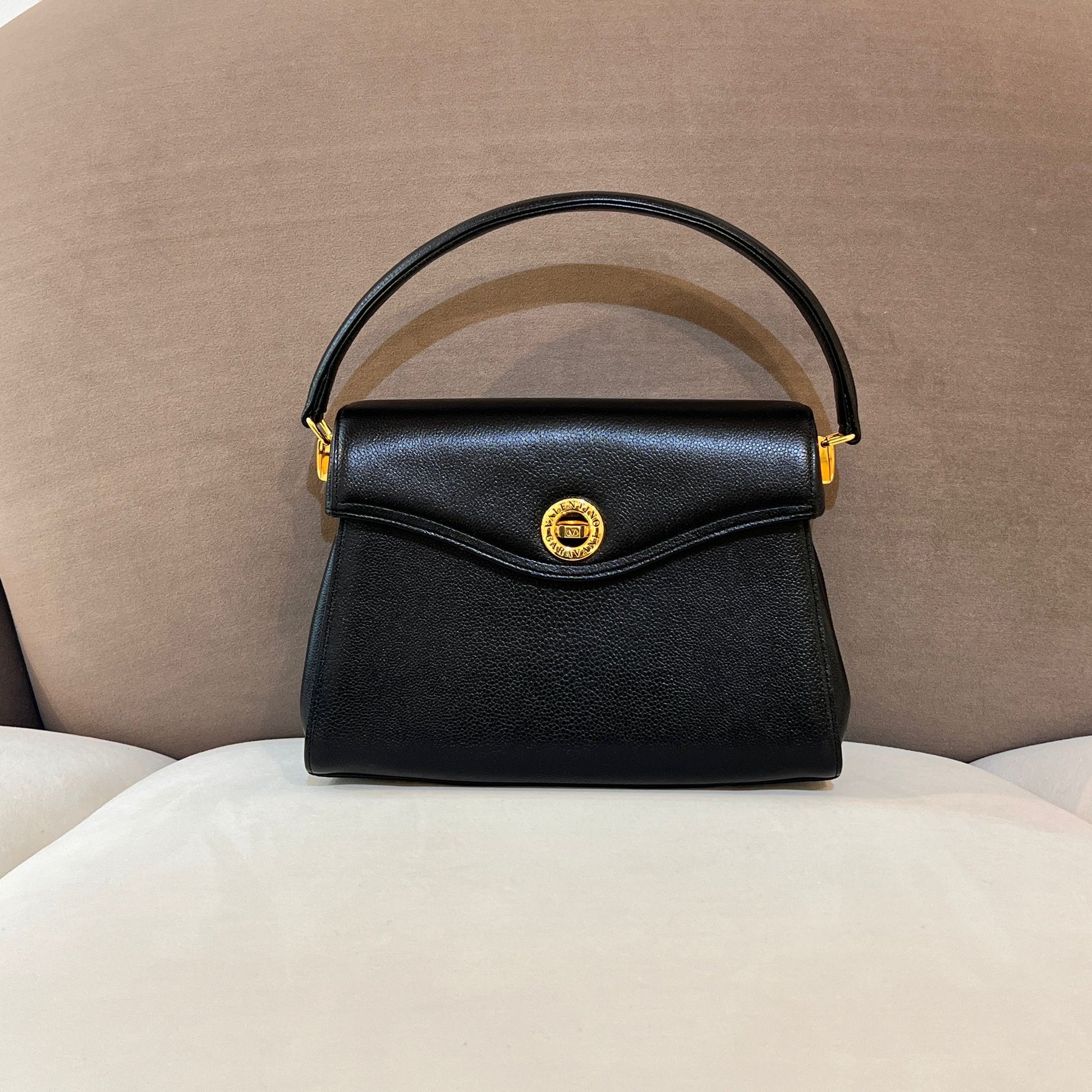 Valentino Garavani Vintage Black Leather Gold Turn-Lock Top Handle Bag