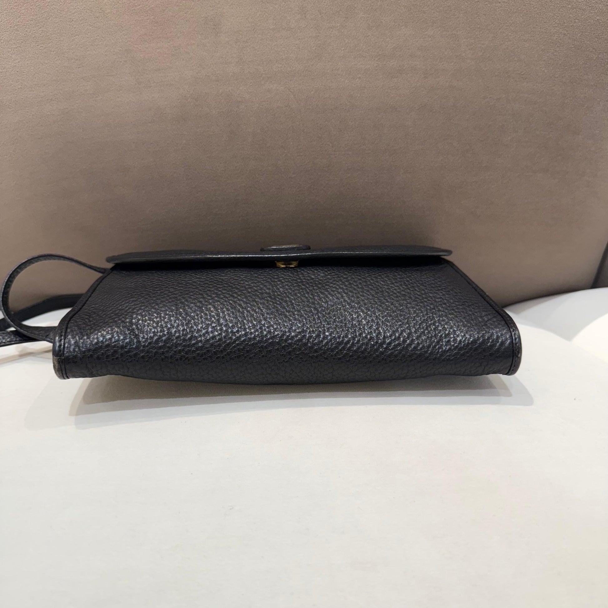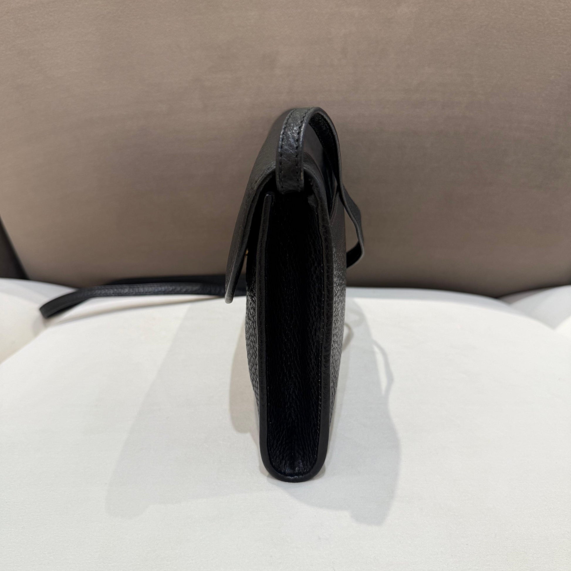 此款 Valentino Garavani 中古肩背袋以黑色顆粒皮革製成,袋型自然柔挺,搭配經典 V 字金屬標誌,展現低調而成熟的品牌風格。