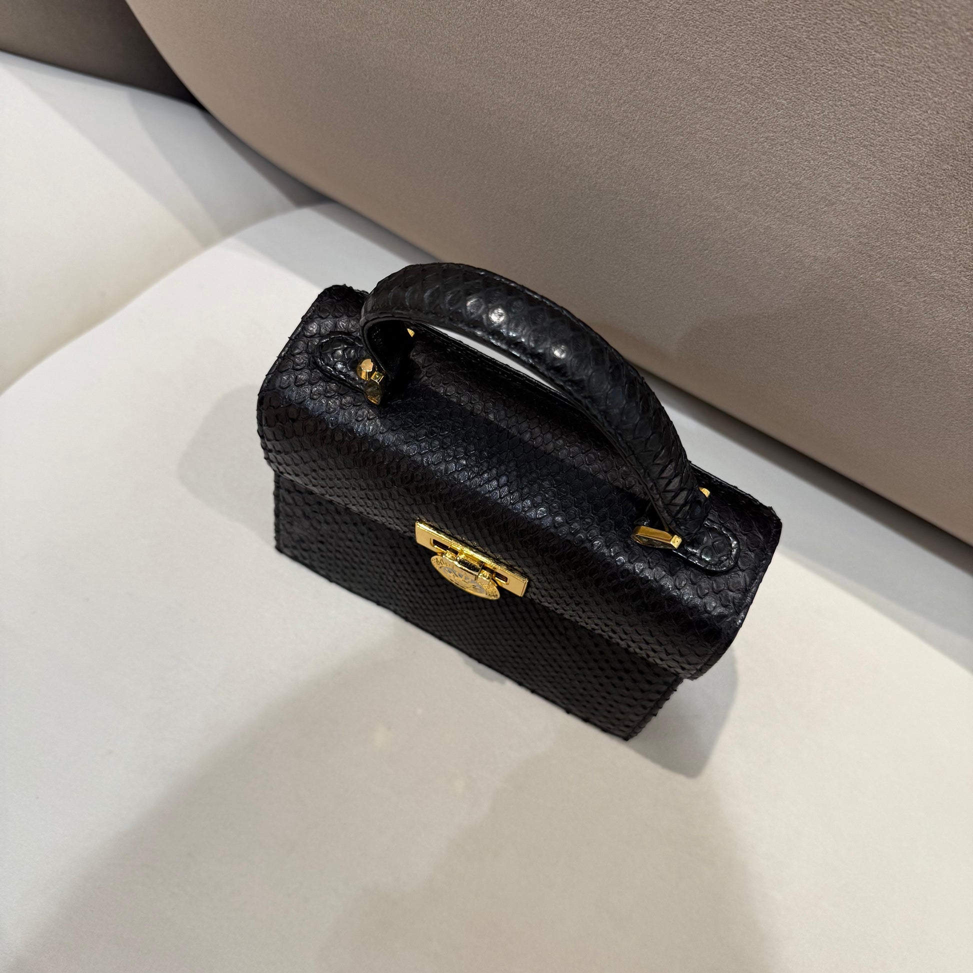 黑色蟒蛇紋理皮革,盒型輪廓俐落